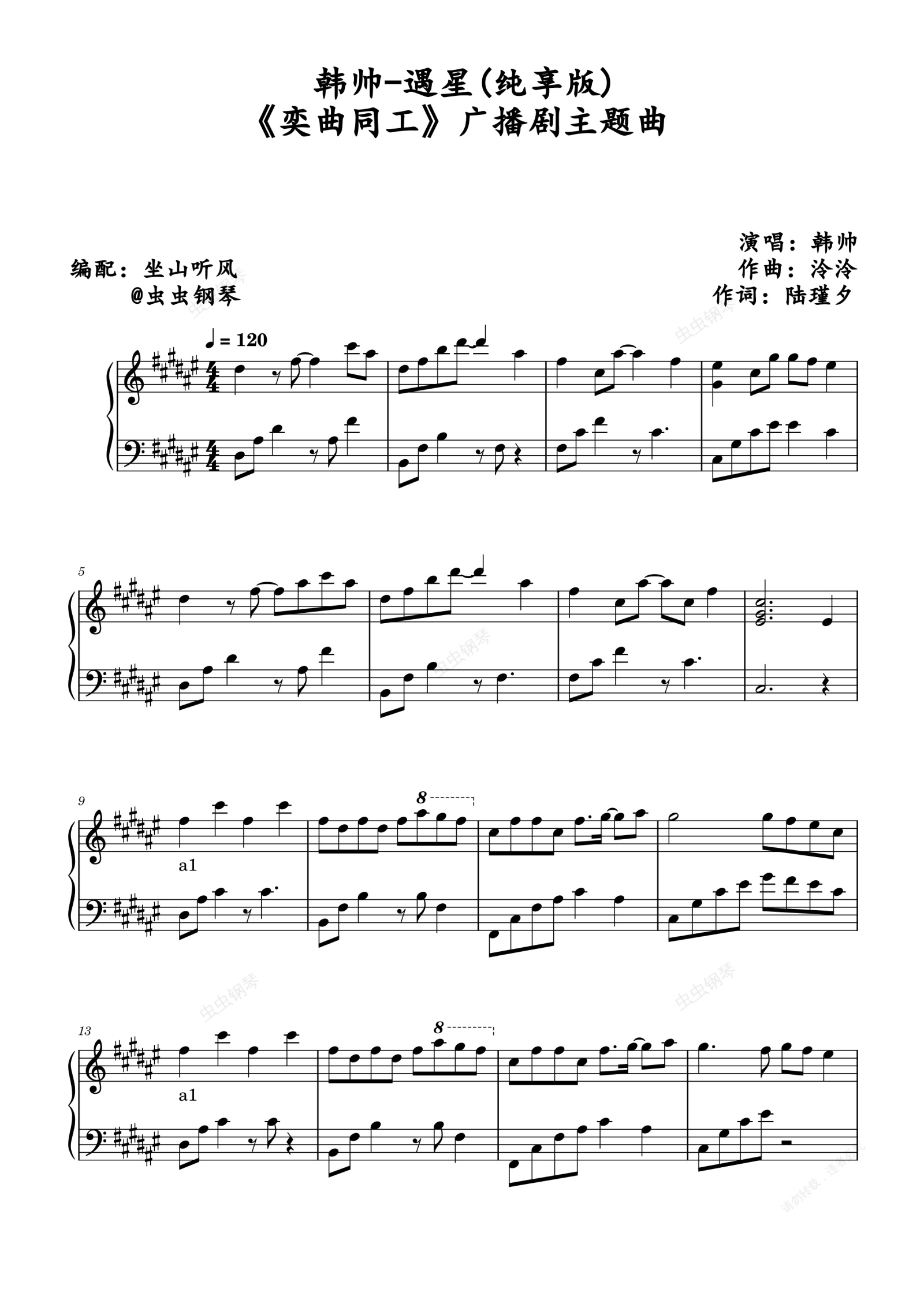 钢琴谱:韩帅 《遇星》—— 《奕曲同工》广播剧主题曲
