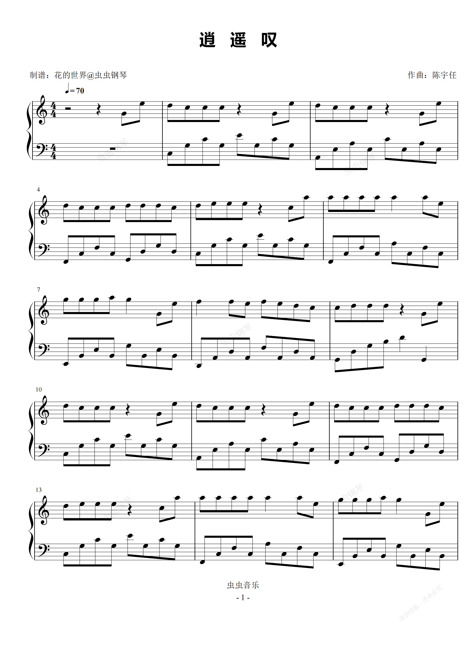钢琴谱:逍遥叹 C调简易版 胡歌