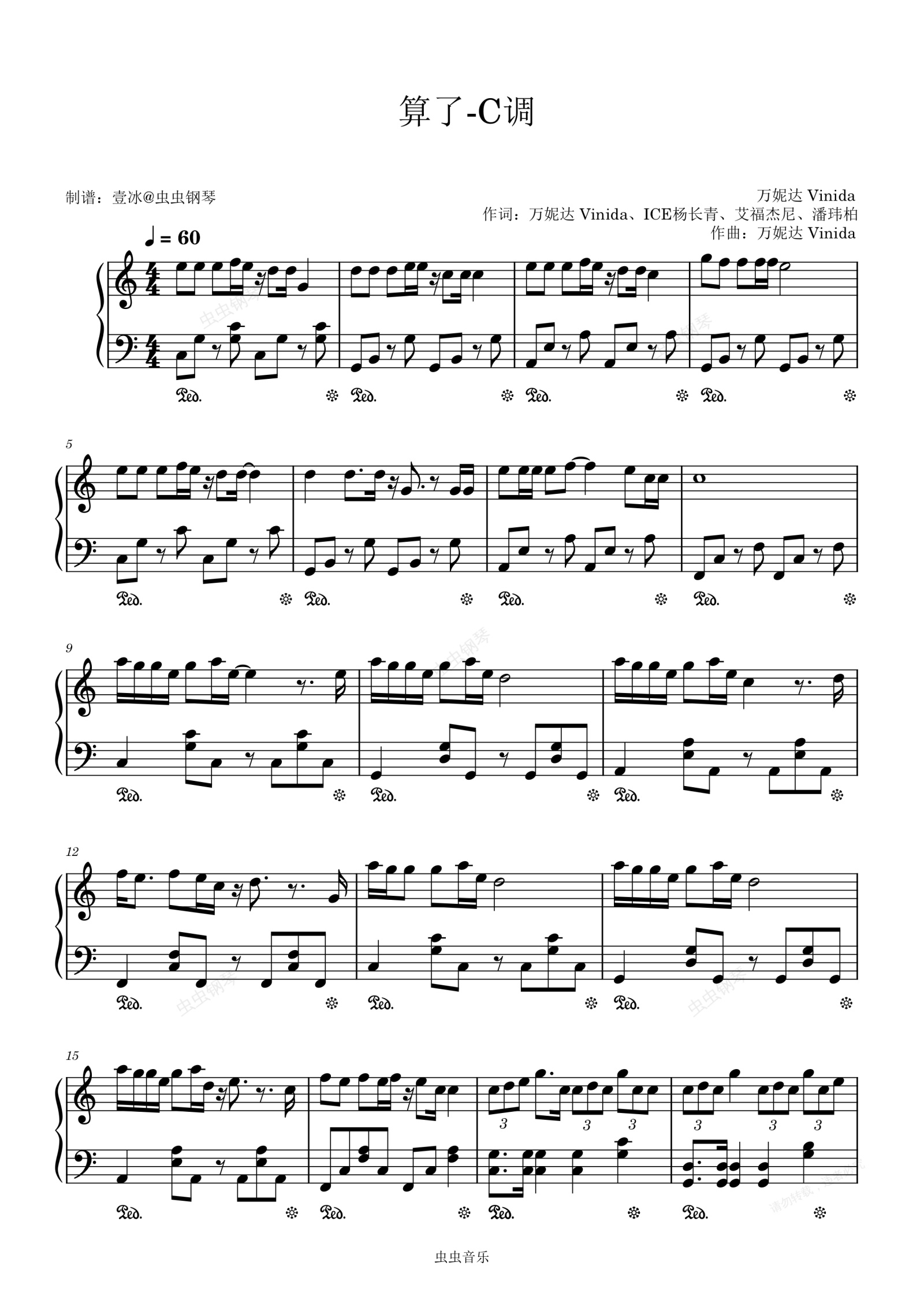 钢琴谱:【网络热曲】算了//万妮达 Vinida-C调