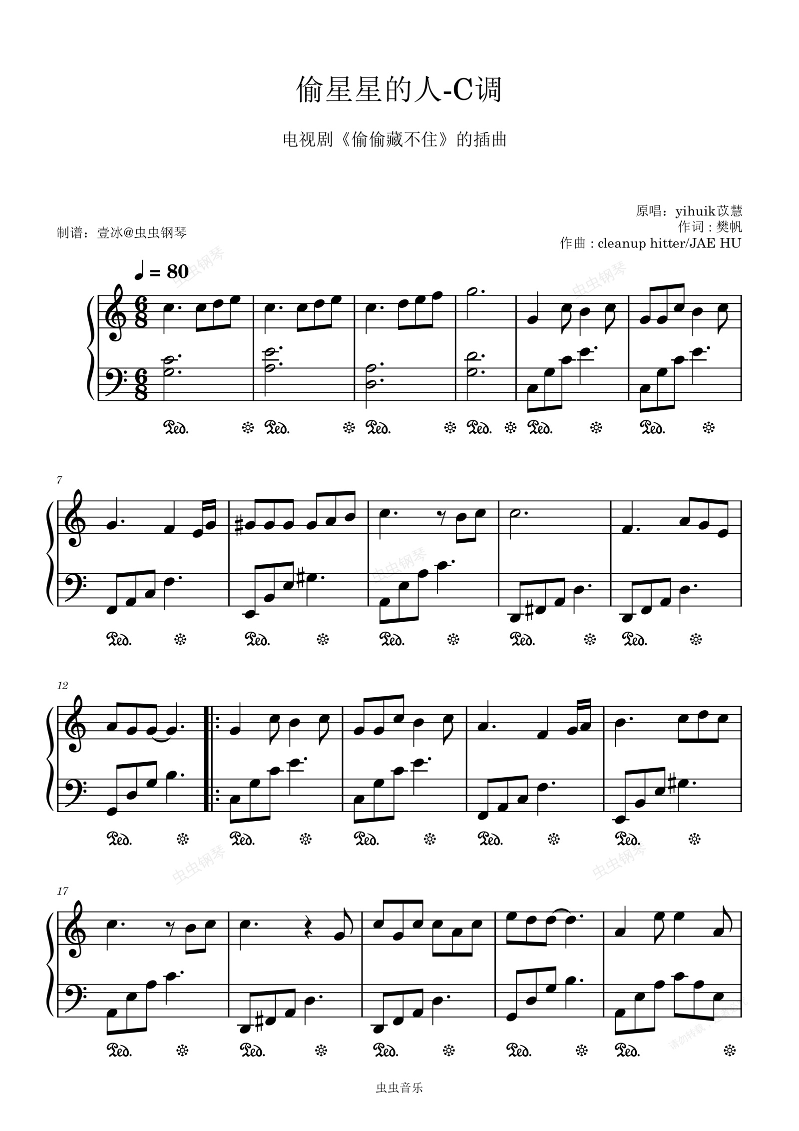 钢琴谱:【影视插曲】偷星星的人//《偷偷藏不住》插曲-C调