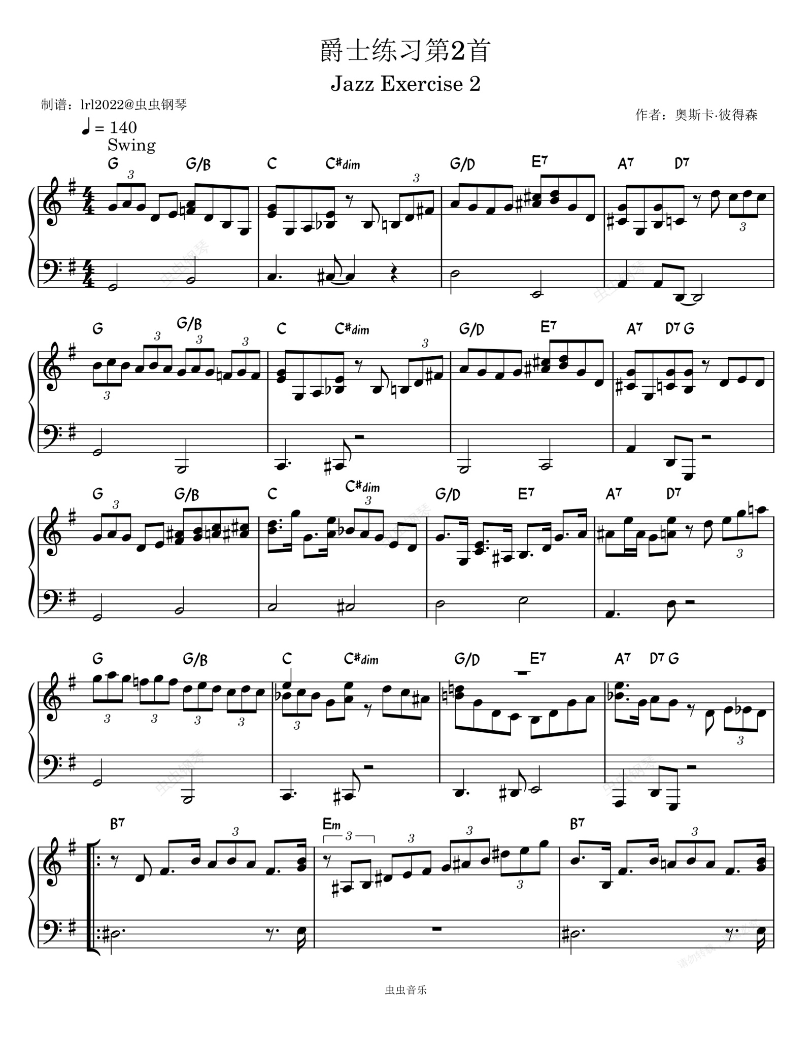 钢琴谱:Jazz Exercise 2 - 钢琴爵士练习第2首 - 钢琴独奏加和弦