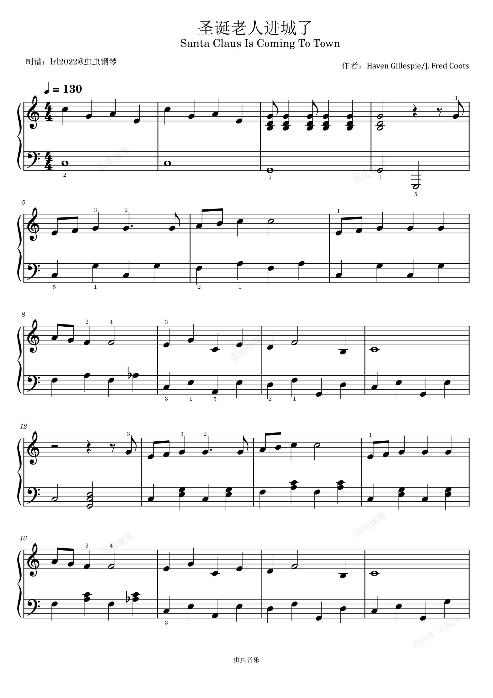 钢琴谱:Santa Claus Is Coming To Town - 《圣诞老人进城了》钢琴独奏 - 简易版
