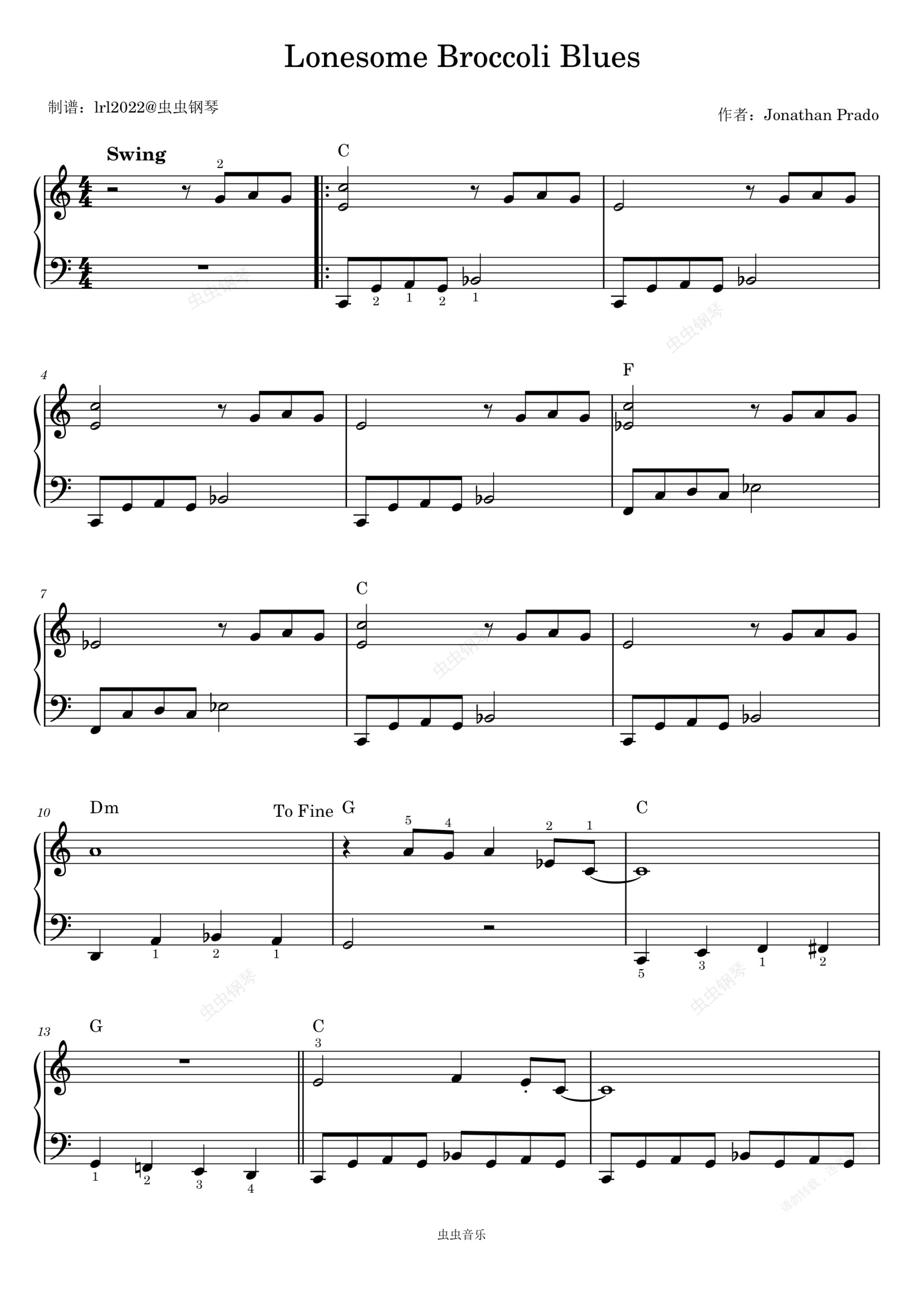 钢琴谱:Lonesome Broccoli Blues - 钢琴独奏 - 简易版