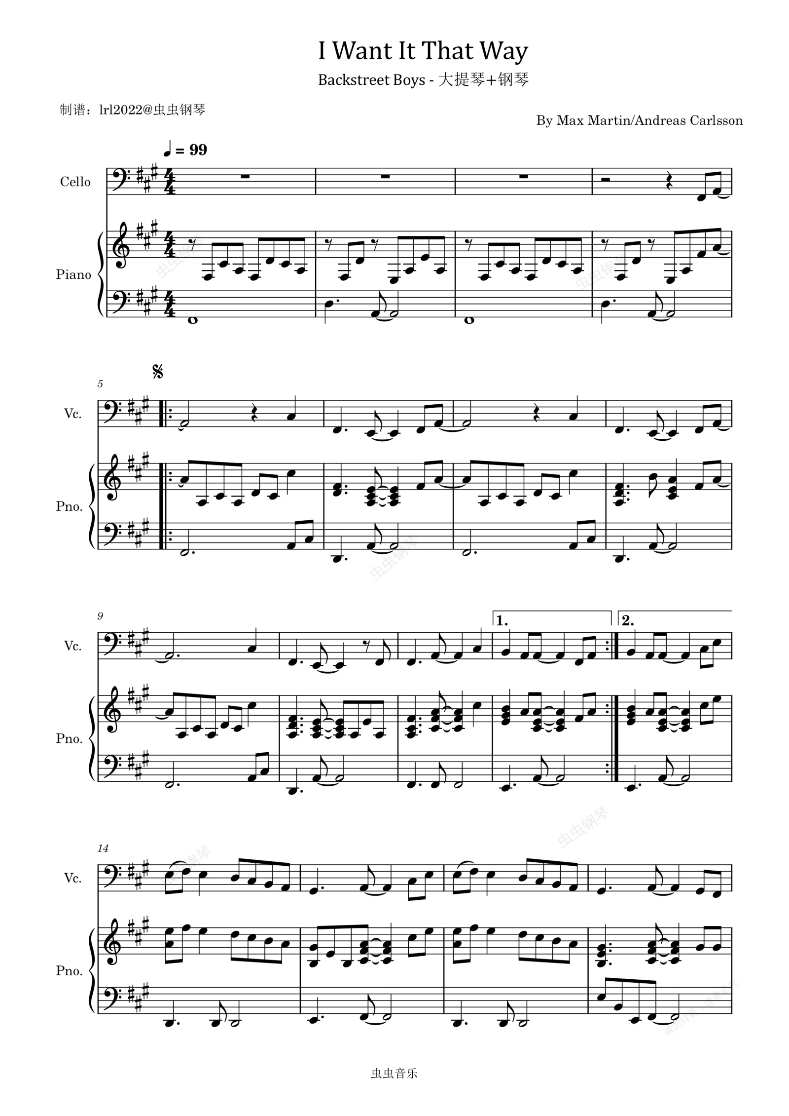 钢琴谱:I want it that way - Backstreet Boys - 大提琴+钢琴合奏 - 后街男孩