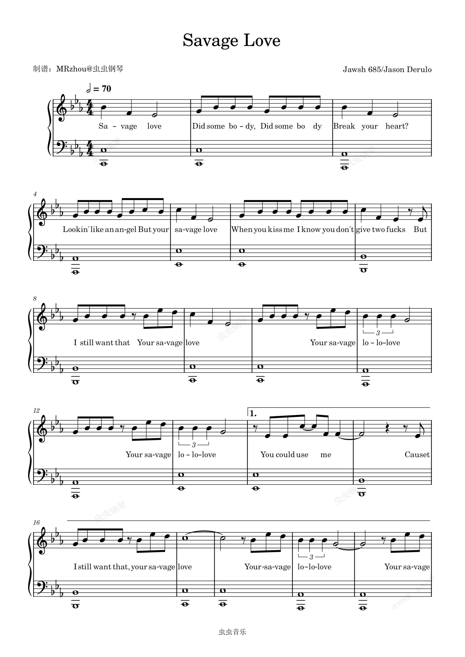 钢琴谱:Savage Love- Jawsh 685/Jason Derulo
