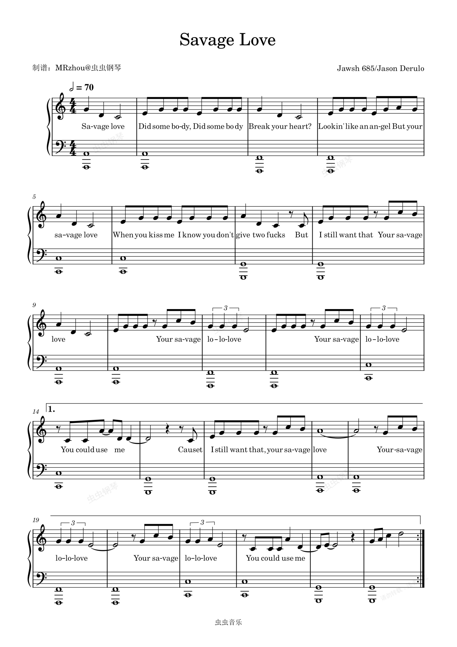 钢琴谱:Savage Love - Jawsh 685/Jason Derulo