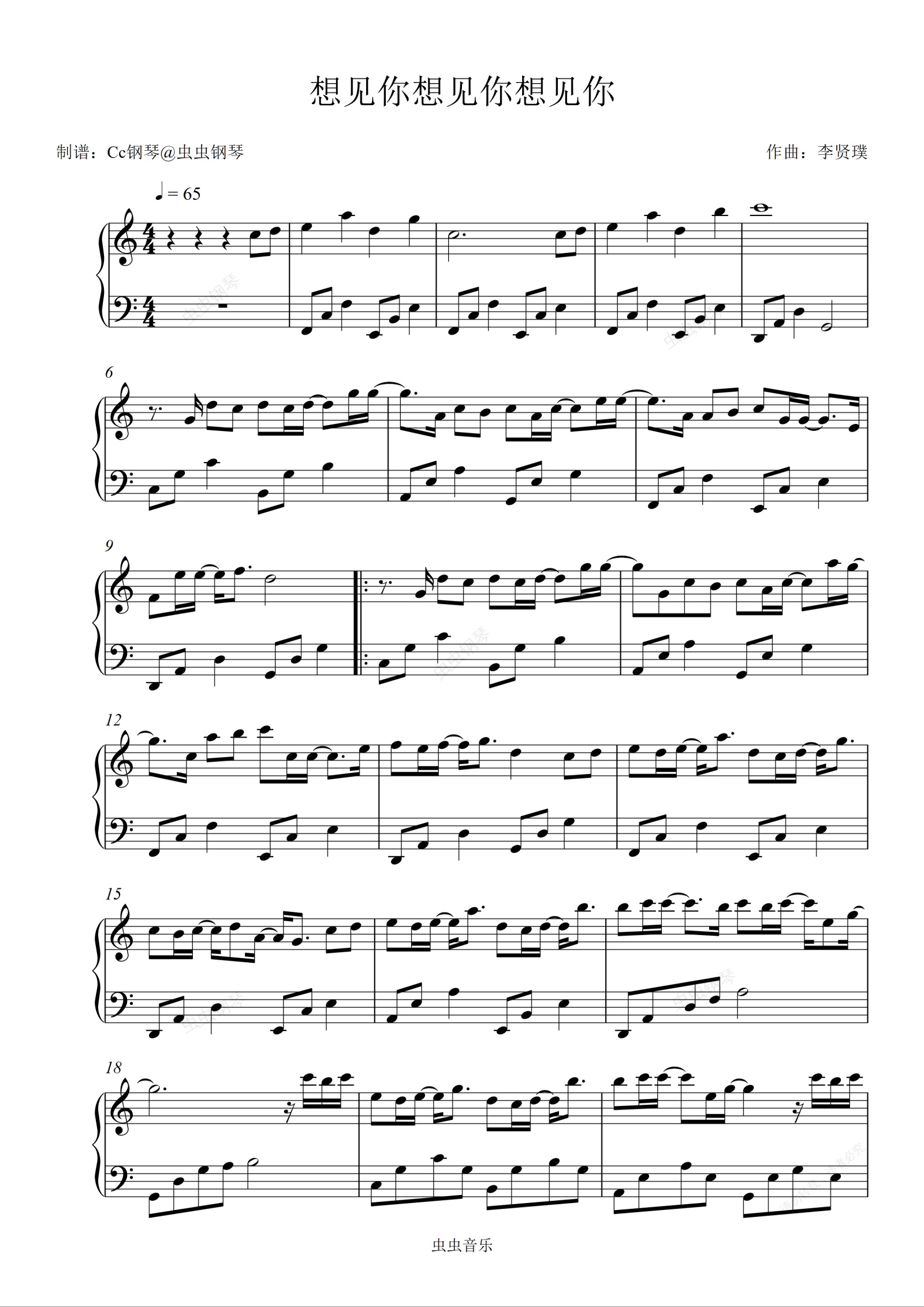 钢琴谱:想见你想见你想见你 C调 好听易上手