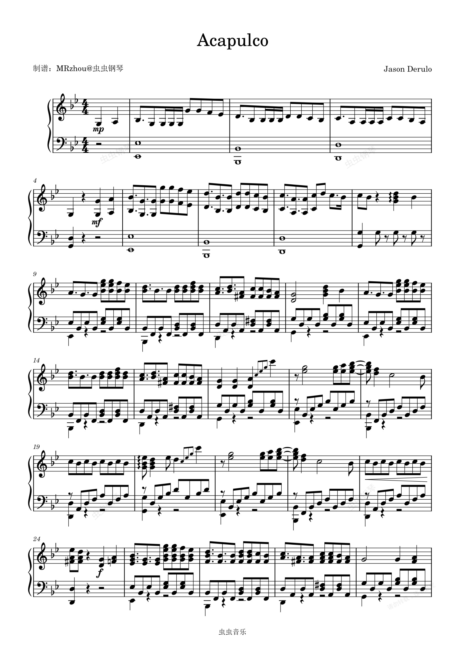 钢琴谱:Acapulco - Jason Derulo