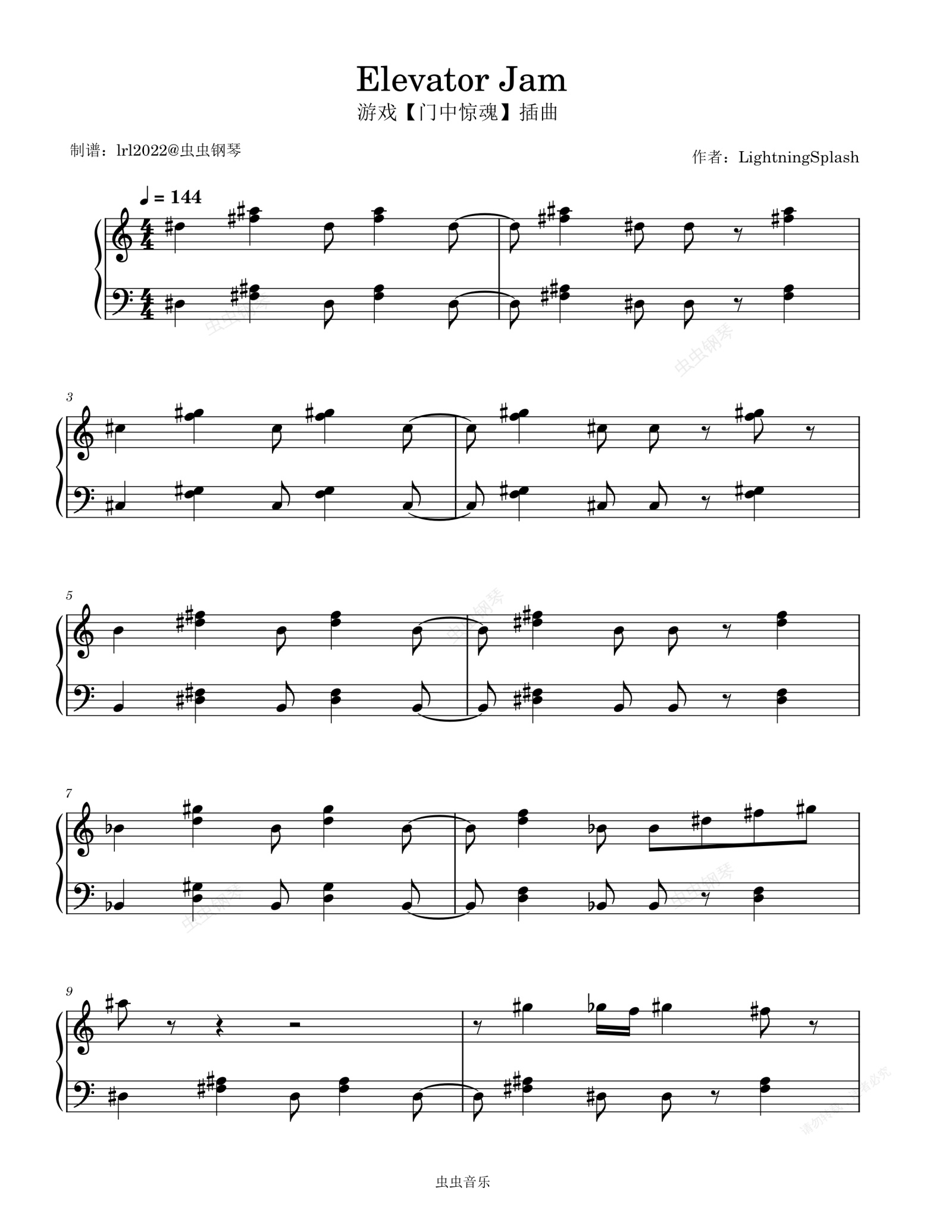 钢琴谱:Elevator Jam – Roblox Doors OST - 游戏【门中惊魂】插曲 - 钢琴独奏 - 简易版