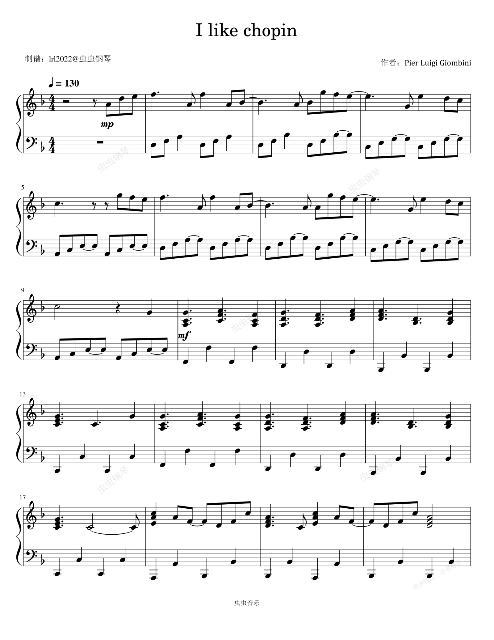 钢琴谱:I Like Chopin - Gazebo - 钢琴独奏 - 简易版 - 我爱肖邦
