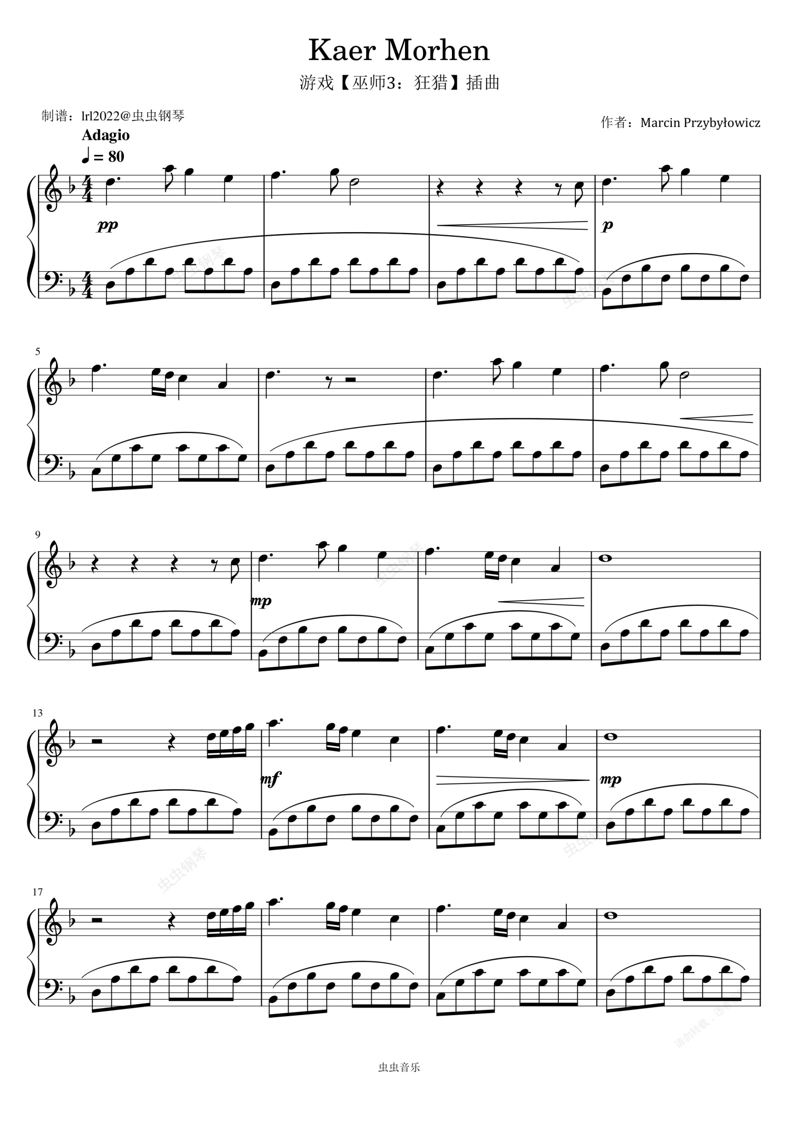 钢琴谱:Kaer Morhen 凯尔·莫罕 - The Witcher 3: Wild Hunt OST - 【巫师3:狂猎】插曲 - 简易版
