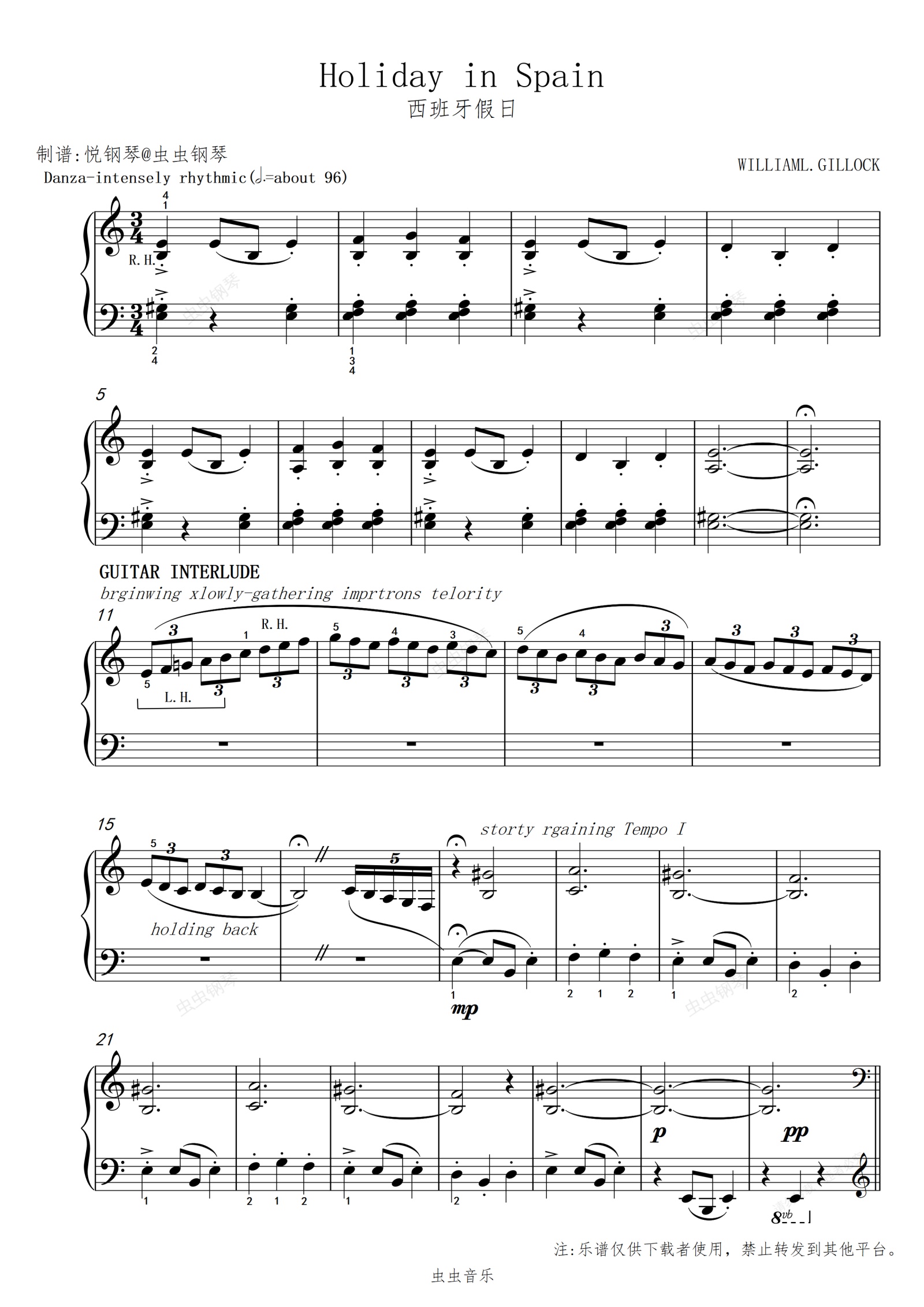 钢琴谱:西班牙假日//Holiday in Spain【火热-激情】