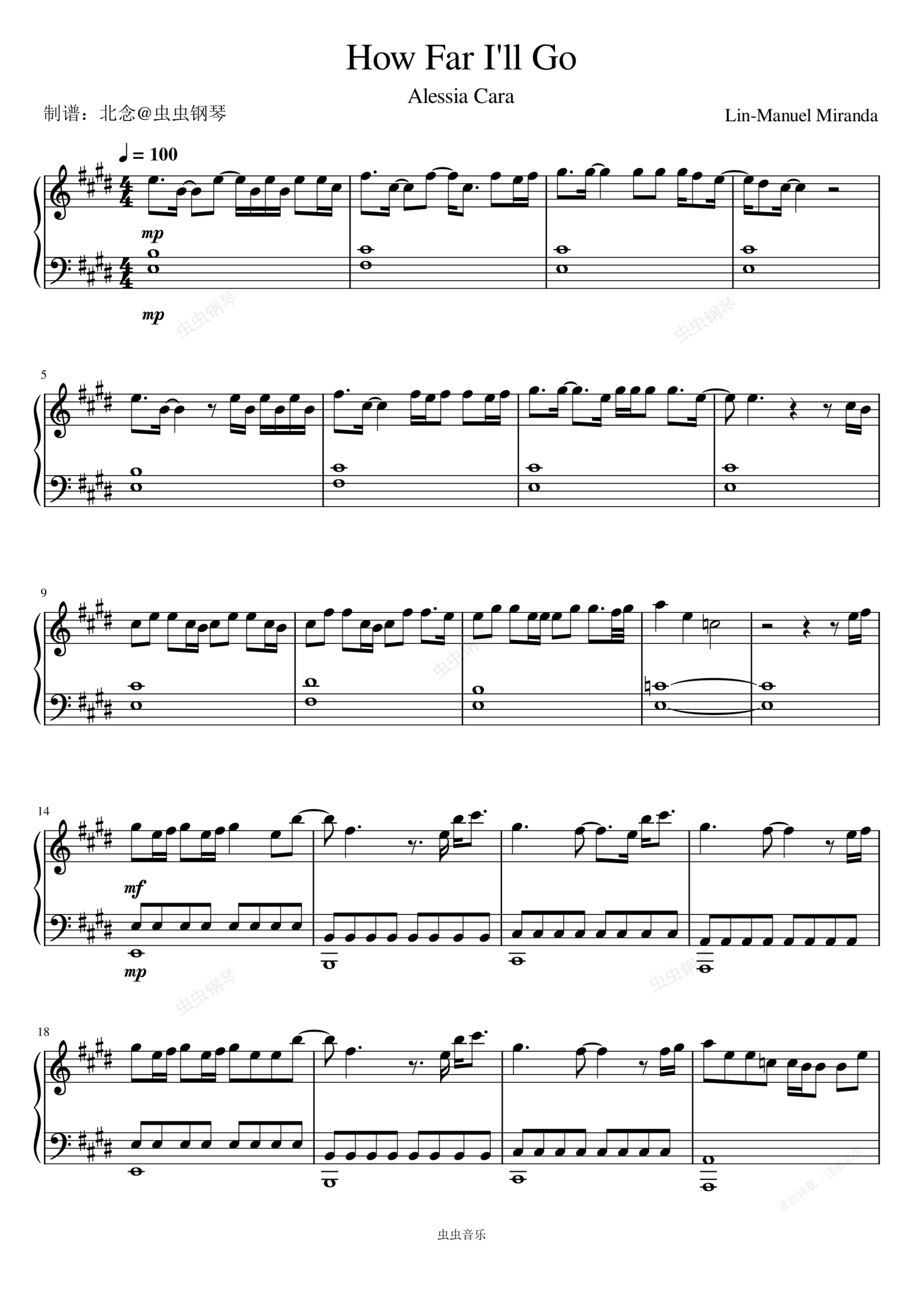 钢琴谱:How Far I'll Go (Alessia Cara Version) - Alessia Cara