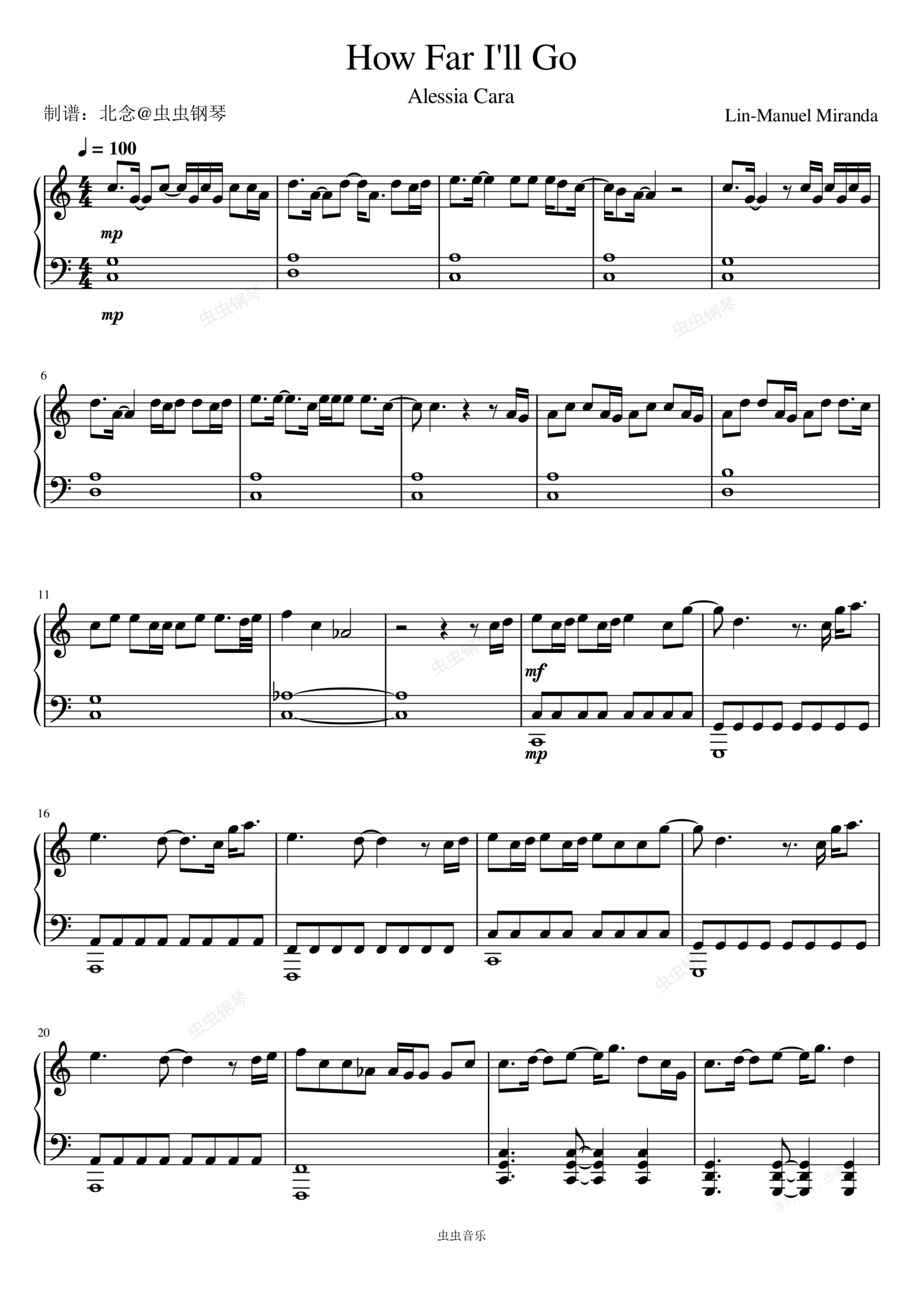 钢琴谱:How Far I'll Go (Alessia Cara Version) - Alessia Cara