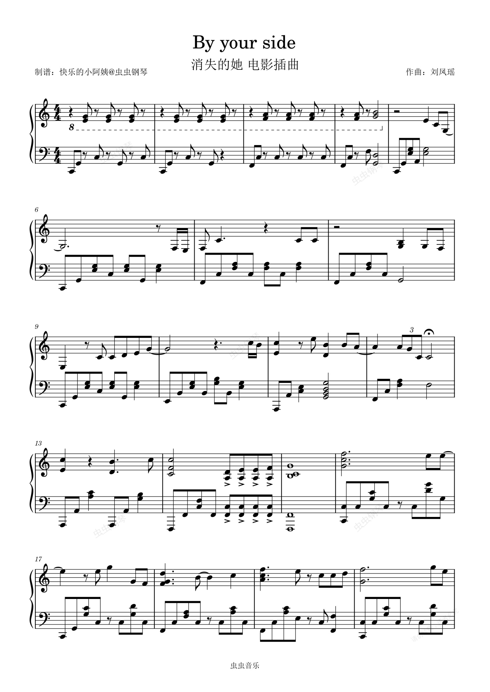 钢琴谱:《By your side 》消失的她 电影插曲-刘凤瑶