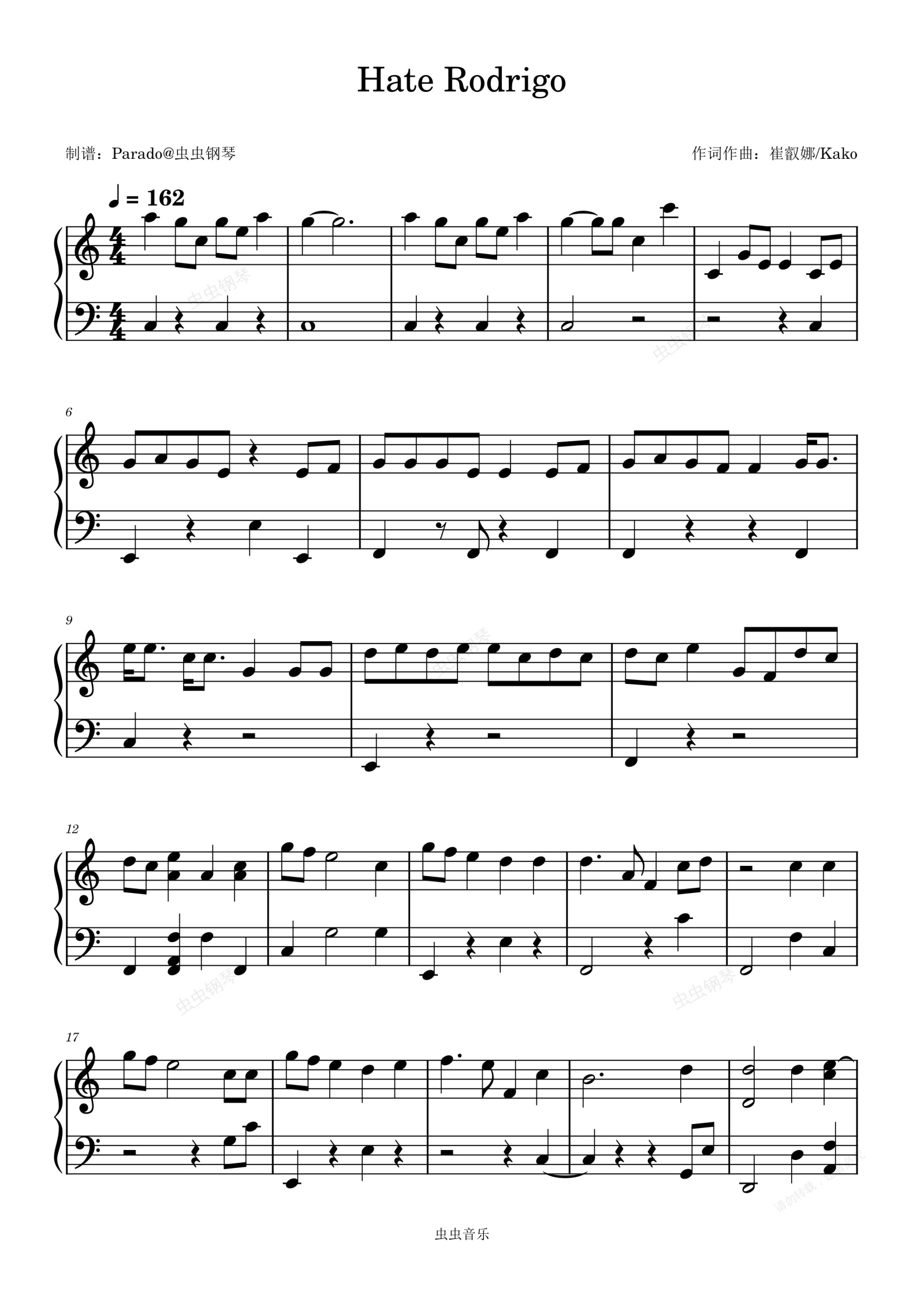 钢琴谱:【火爆新曲】Hate Rodrigo[C调] - 崔叡娜/宋雨琦