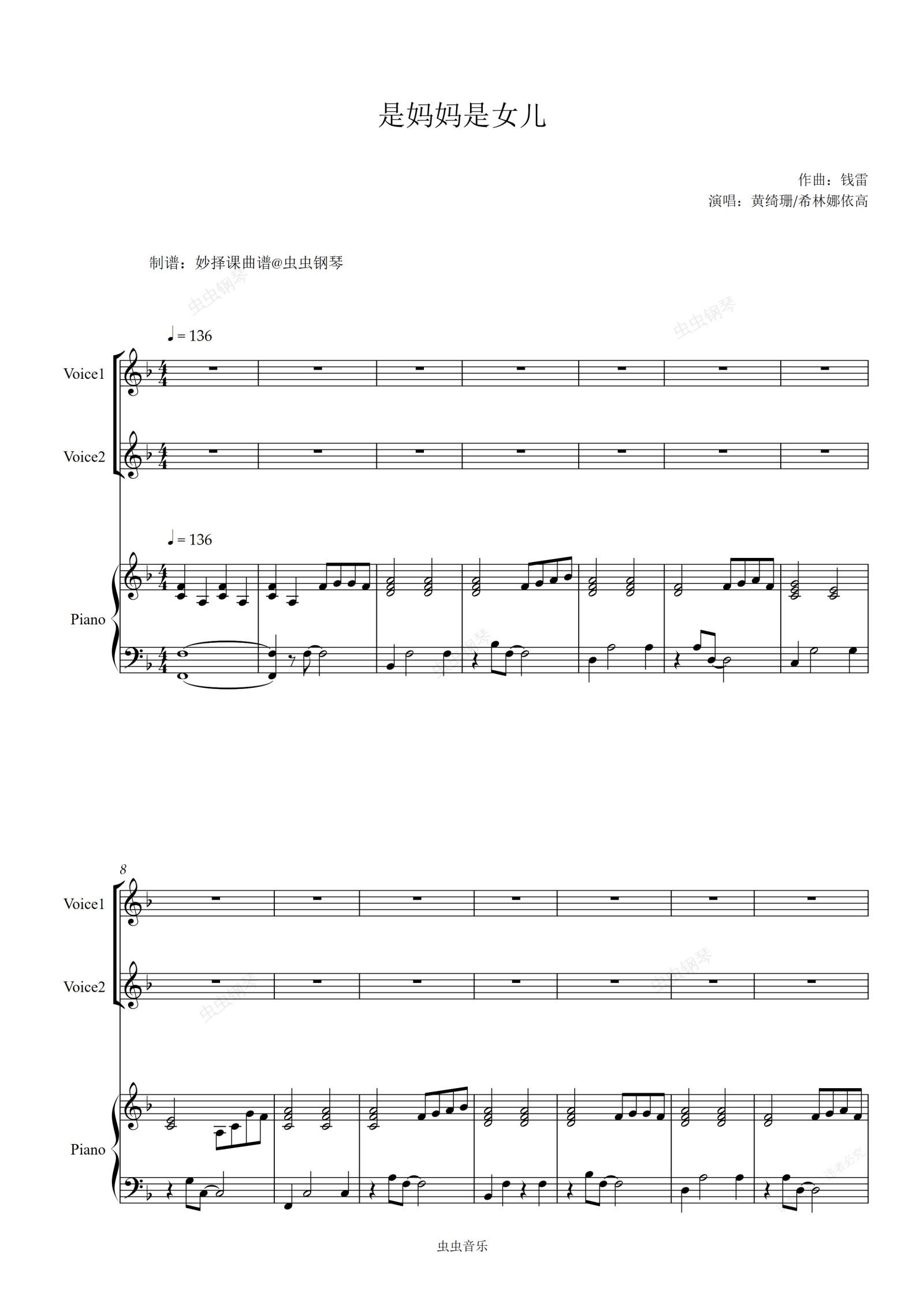 钢琴谱:高还原带歌词F调原调《是妈妈是女儿》弹唱谱