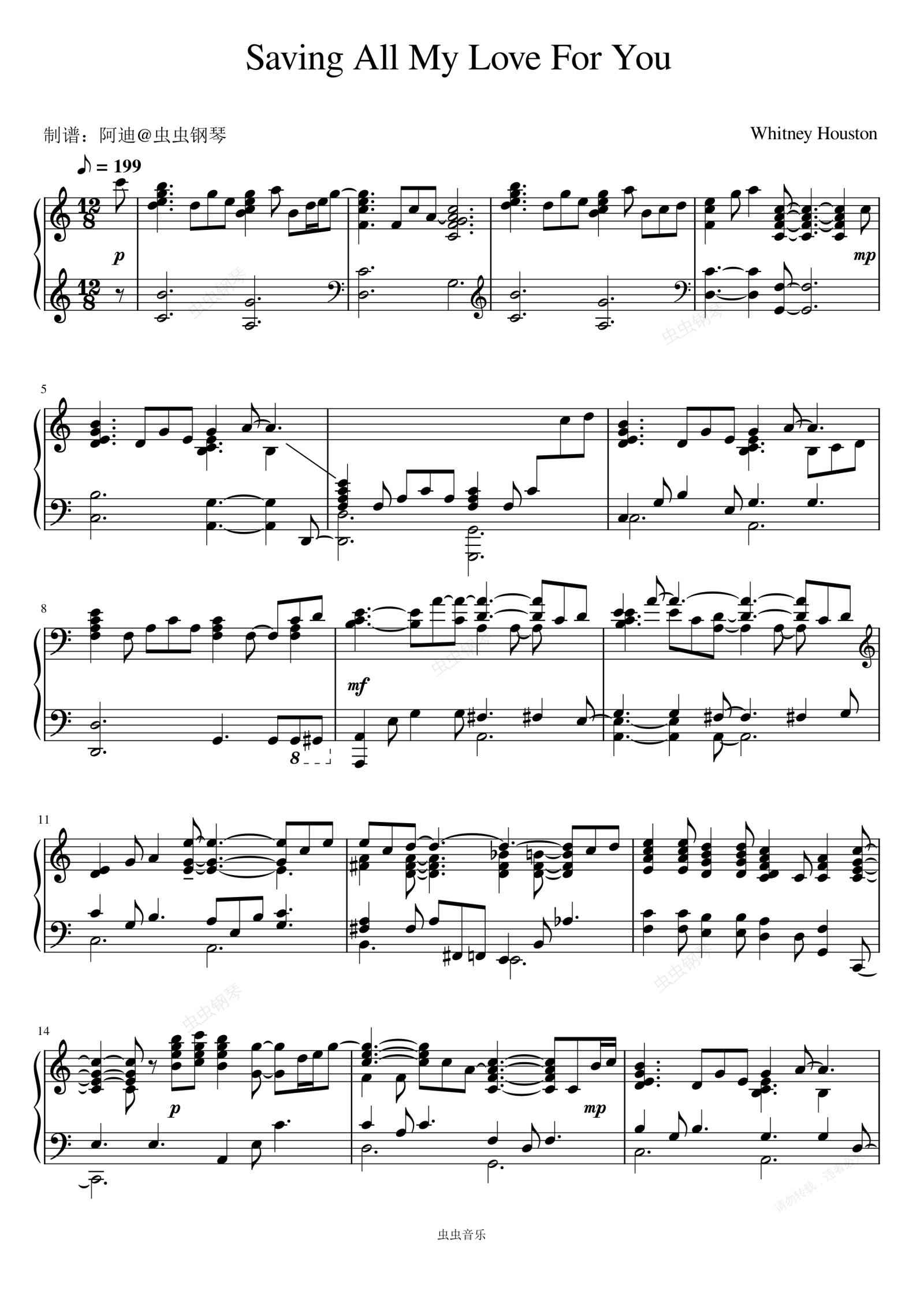 钢琴谱:Saving All My Love For You - Whitney Houston