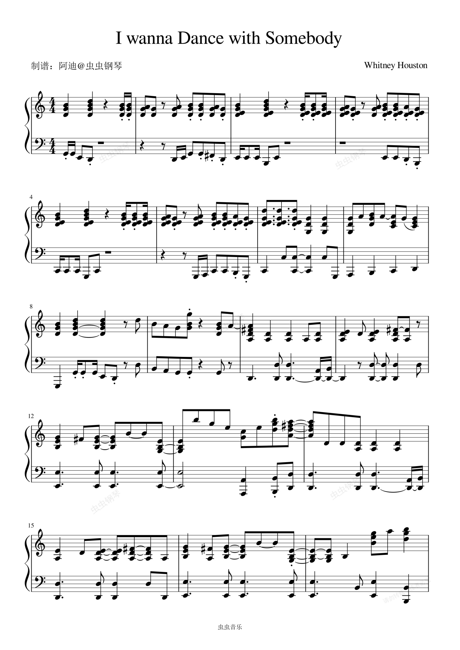 钢琴谱:I Wanna Dance with Somebody (Who Loves Me) - Whitney Houston