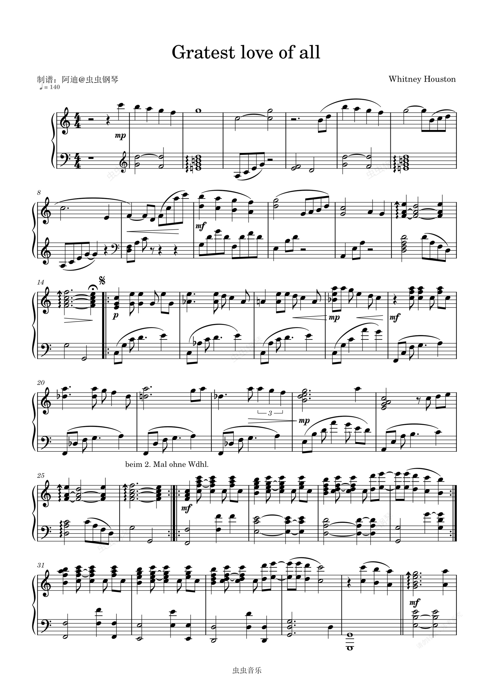 钢琴谱:The Greatest Love Of All - Whitney Houston/Jax Jones