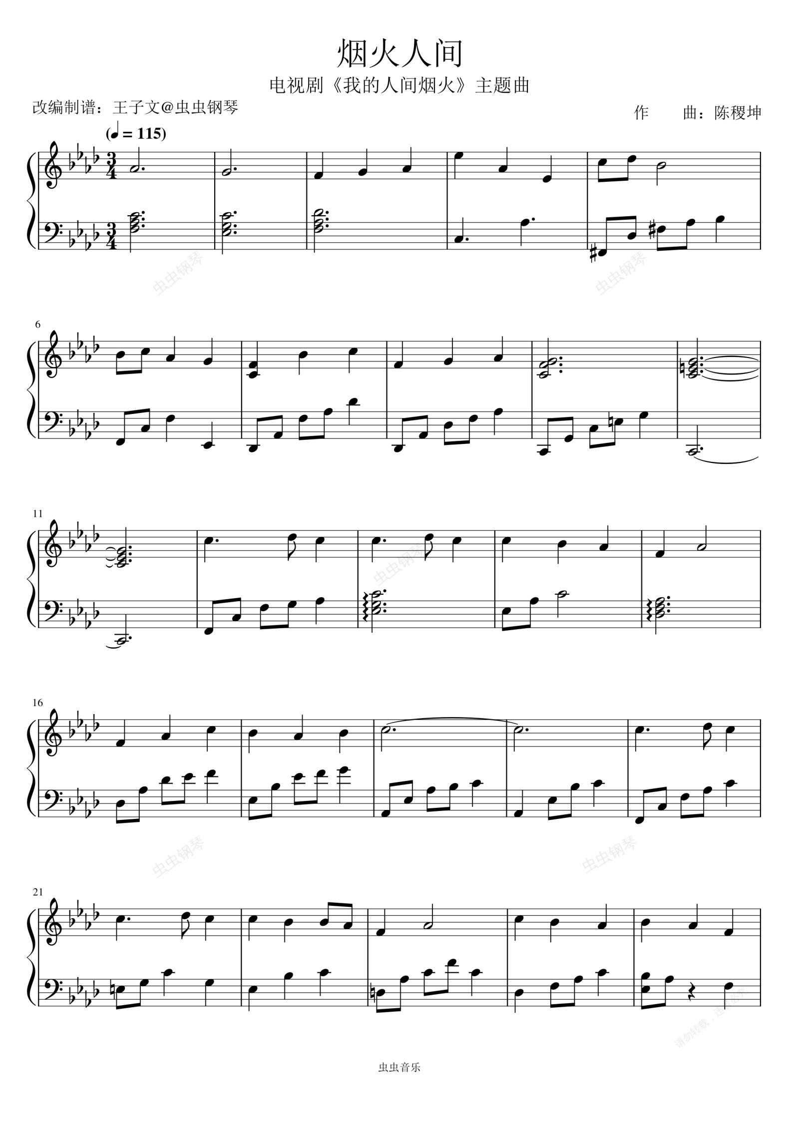 钢琴谱:《烟火人间》-《我的人间烟火》主题曲(全曲完整版)