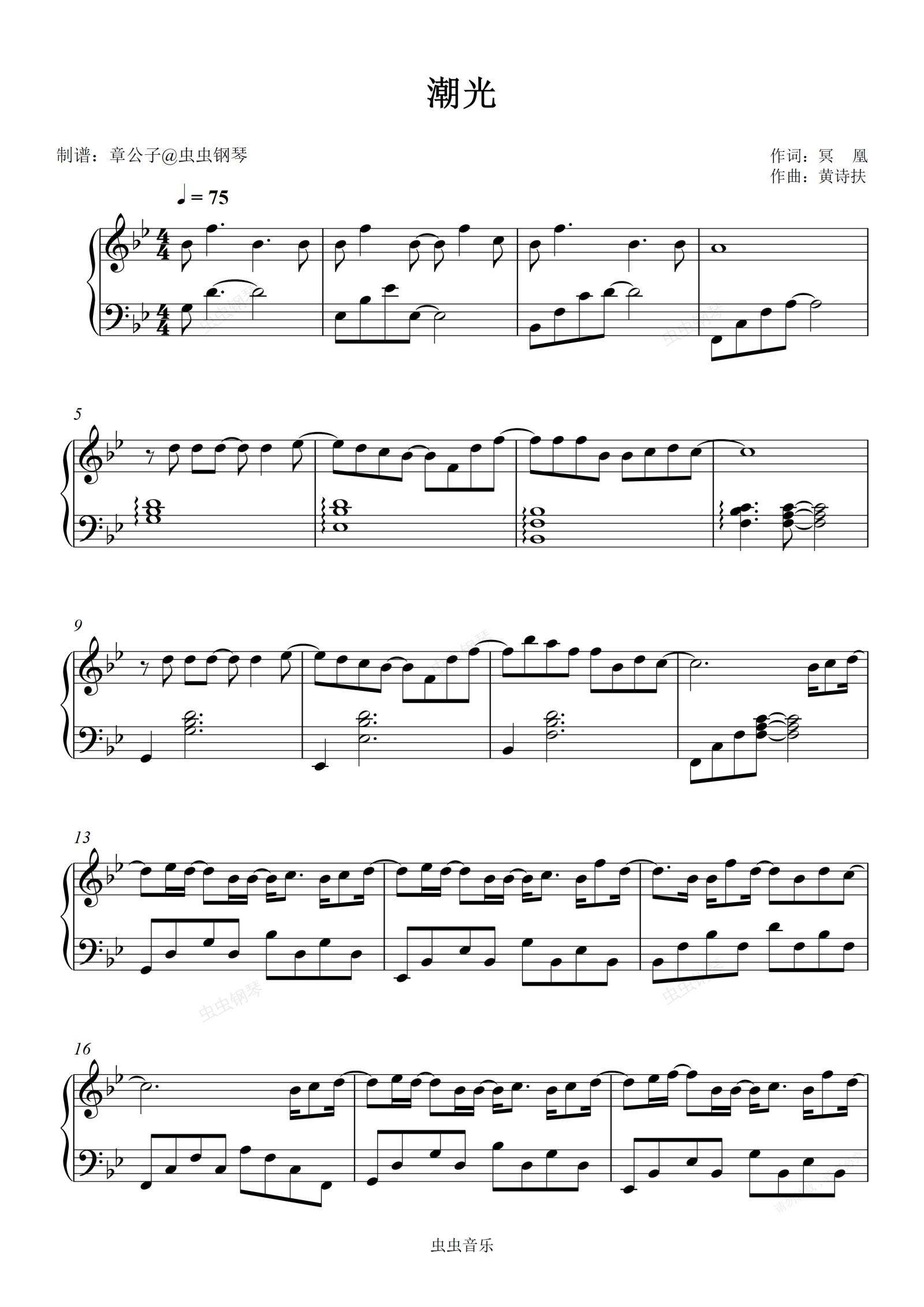 钢琴谱:潮光 张靓颖《逆水寒》BGM 精简版