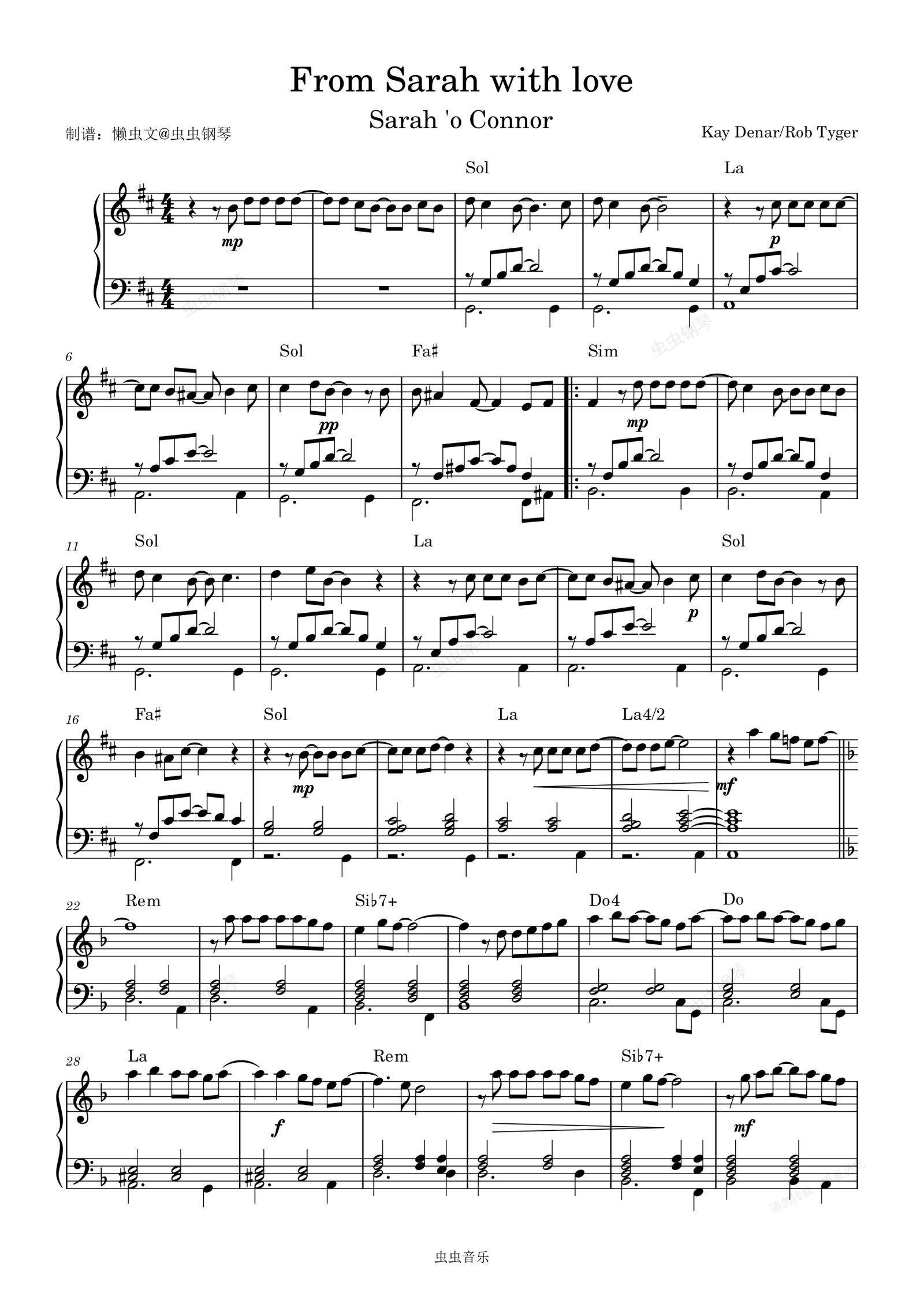 钢琴谱:From Sarah With Love (Album Version) - Sarah Connor