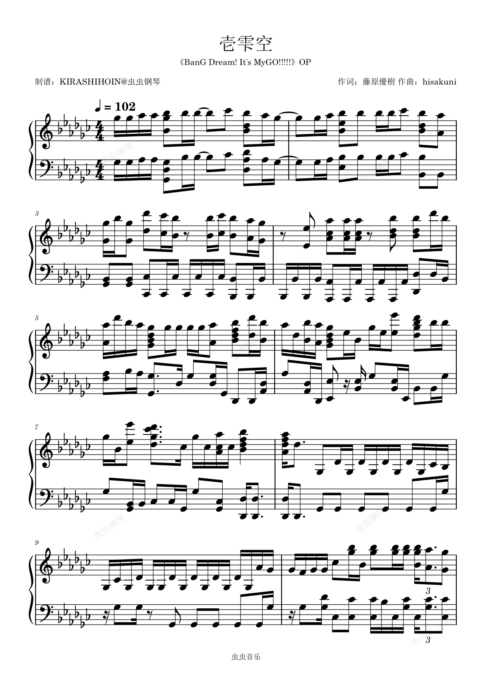 钢琴谱:壱雫空(《BanG Dream! It's MyGO!!!!!》OP/片头曲)- MyGO!!!!!