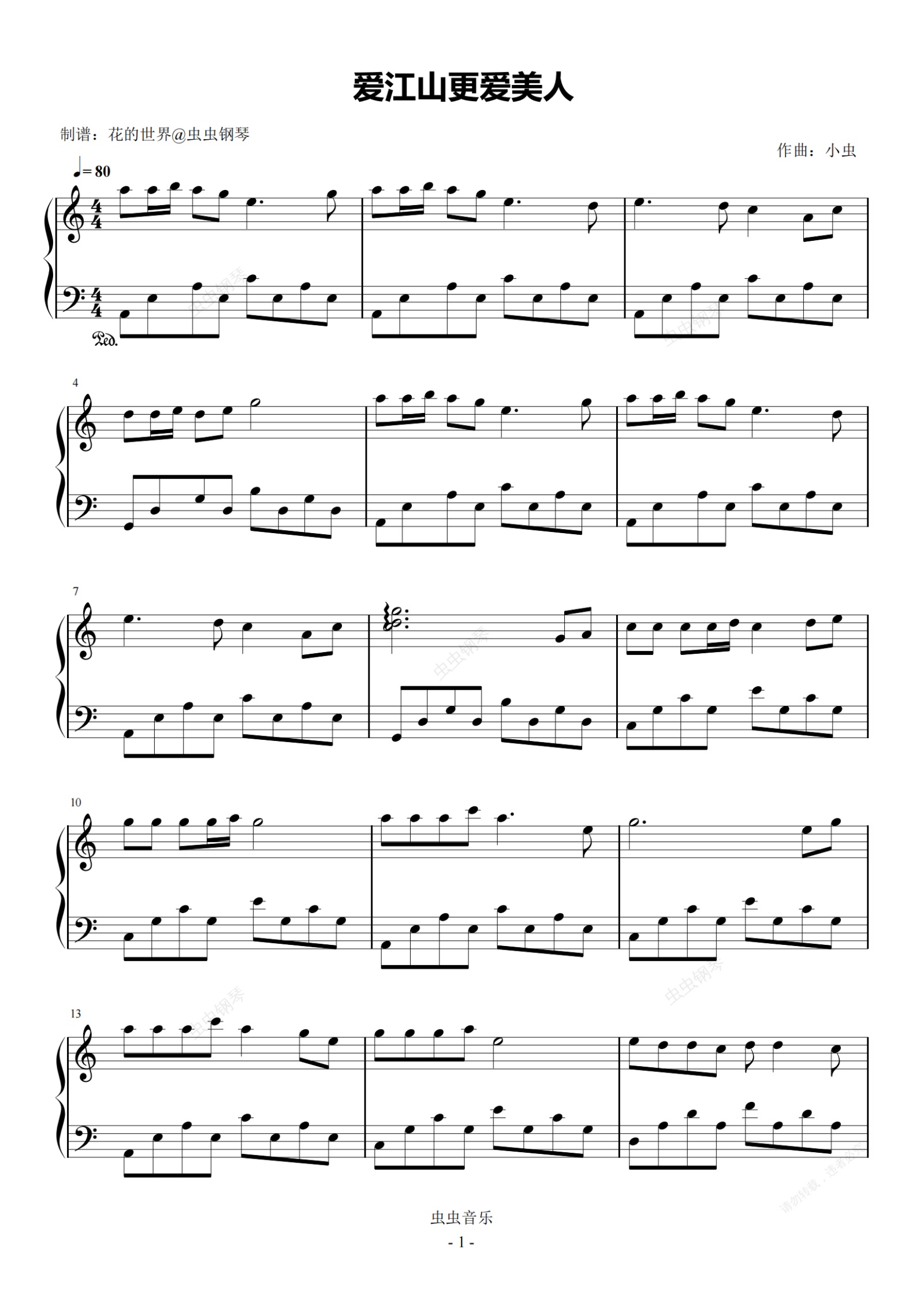 钢琴谱:爱江山更爱美人 C调简易版 李丽芬