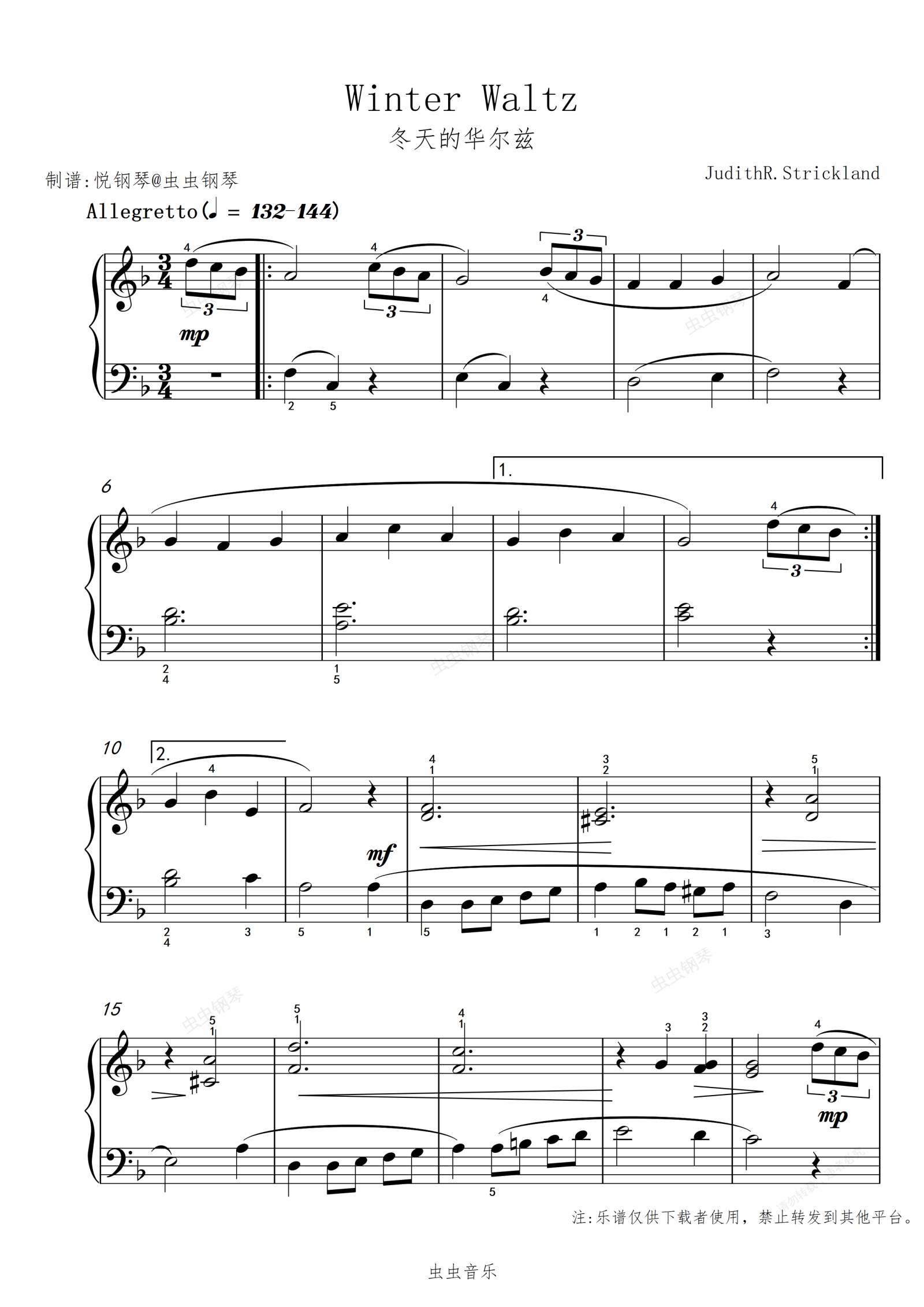 钢琴谱:冬天的华尔兹//Winter Waltz【愉快】
