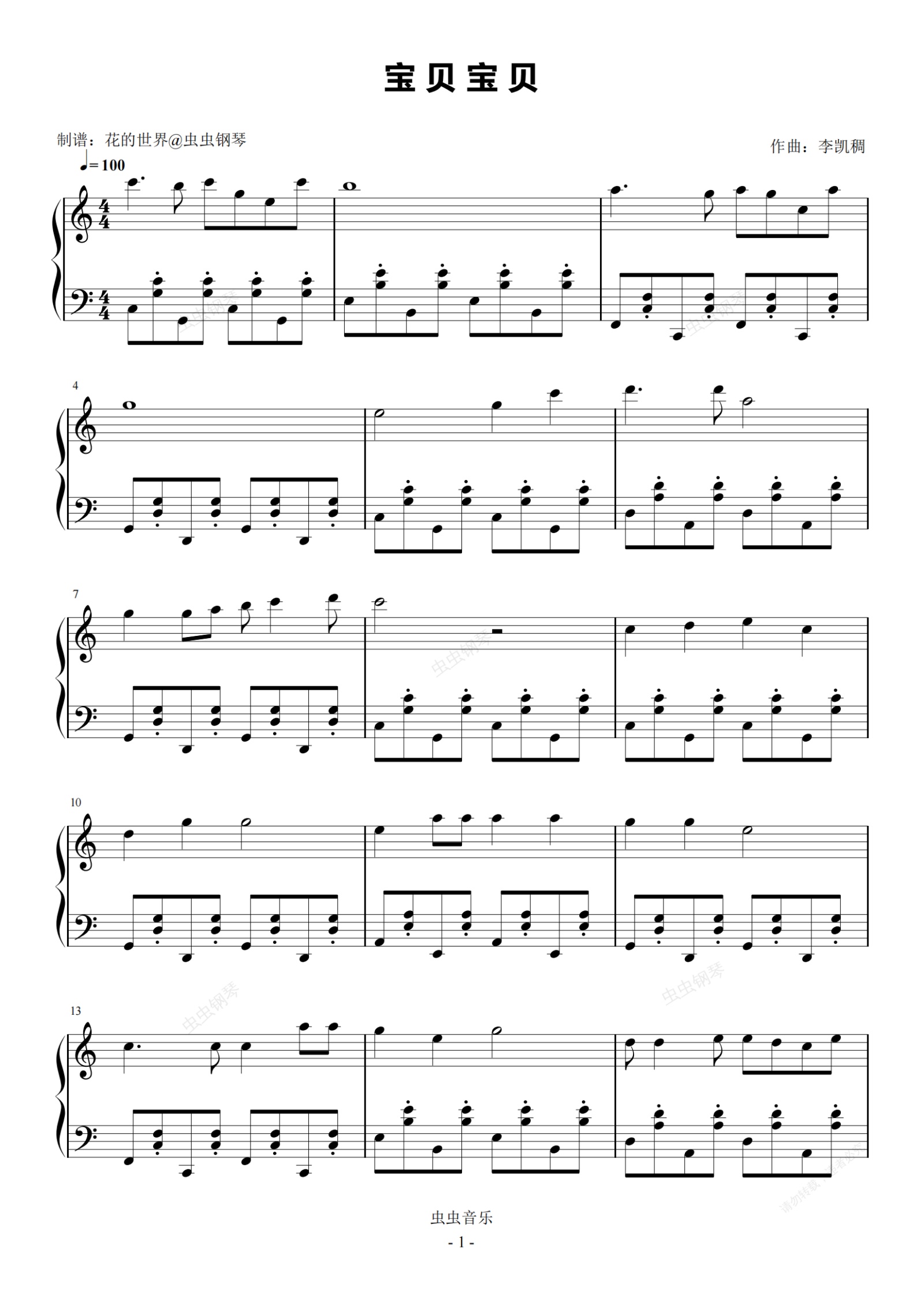 钢琴谱:宝贝宝贝 C调简易版 李昕融/樊桐舟/李凯稠