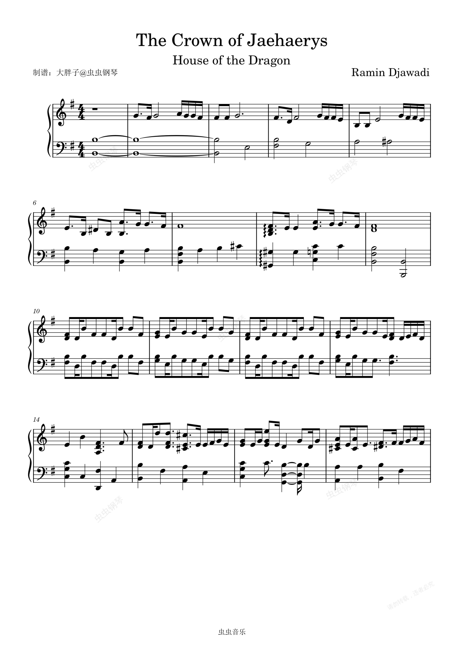 钢琴谱:The Crown of Jaehaerys - Ramin Djawadi