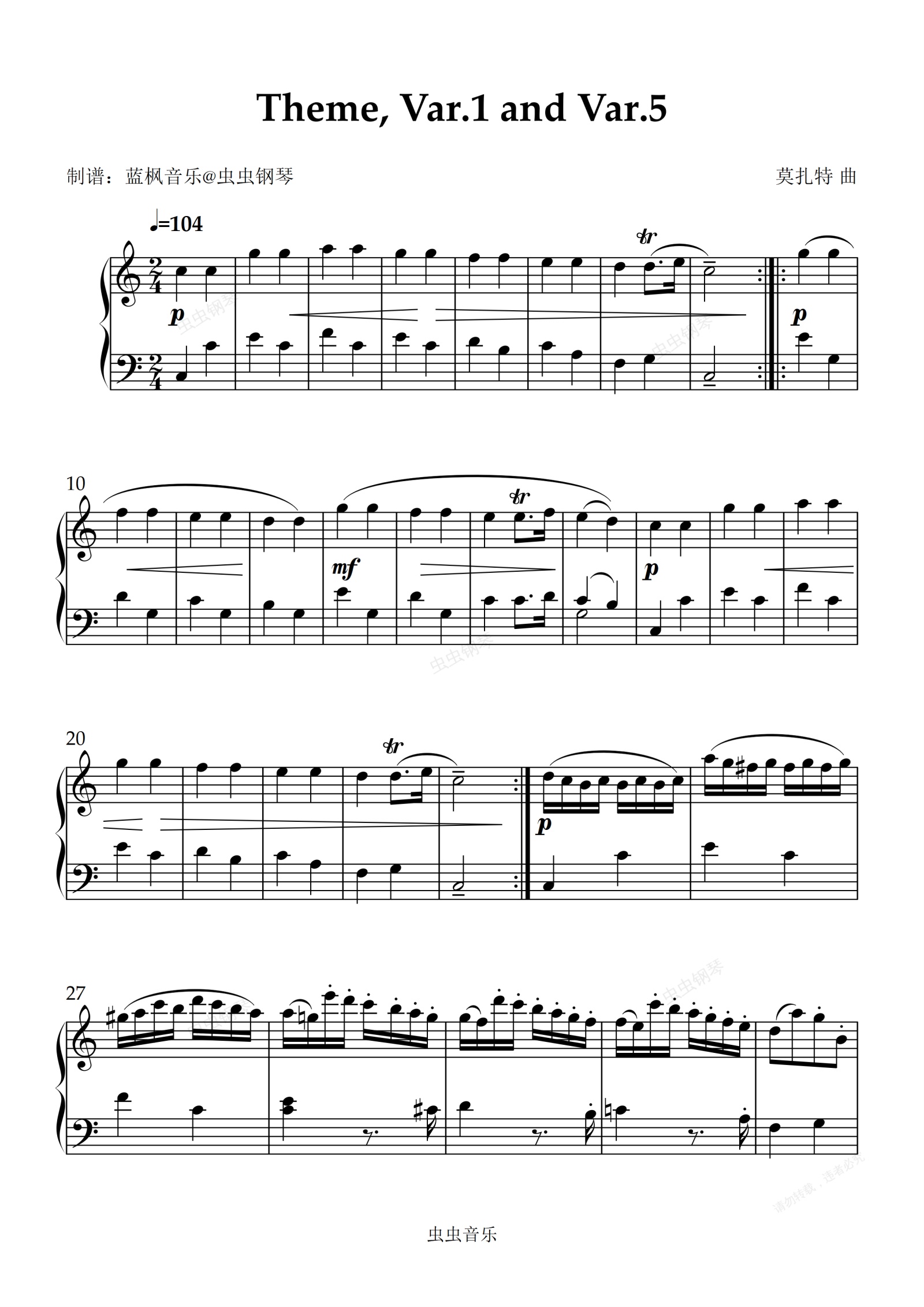钢琴谱:Theme, Var 1 and Var 5
