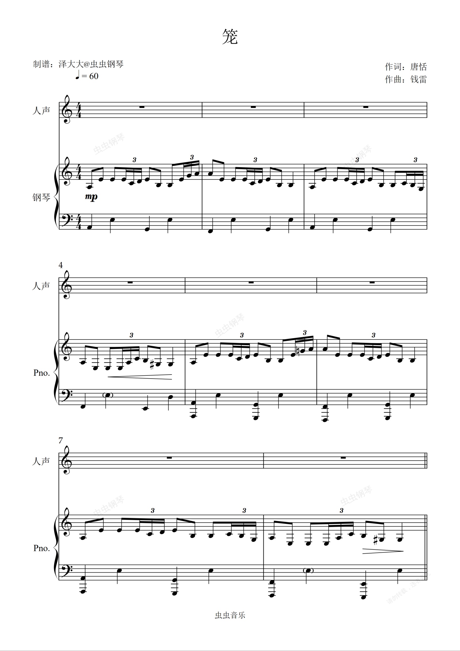 钢琴谱:笼【原版高难弹唱附词】泽大大 张碧晨