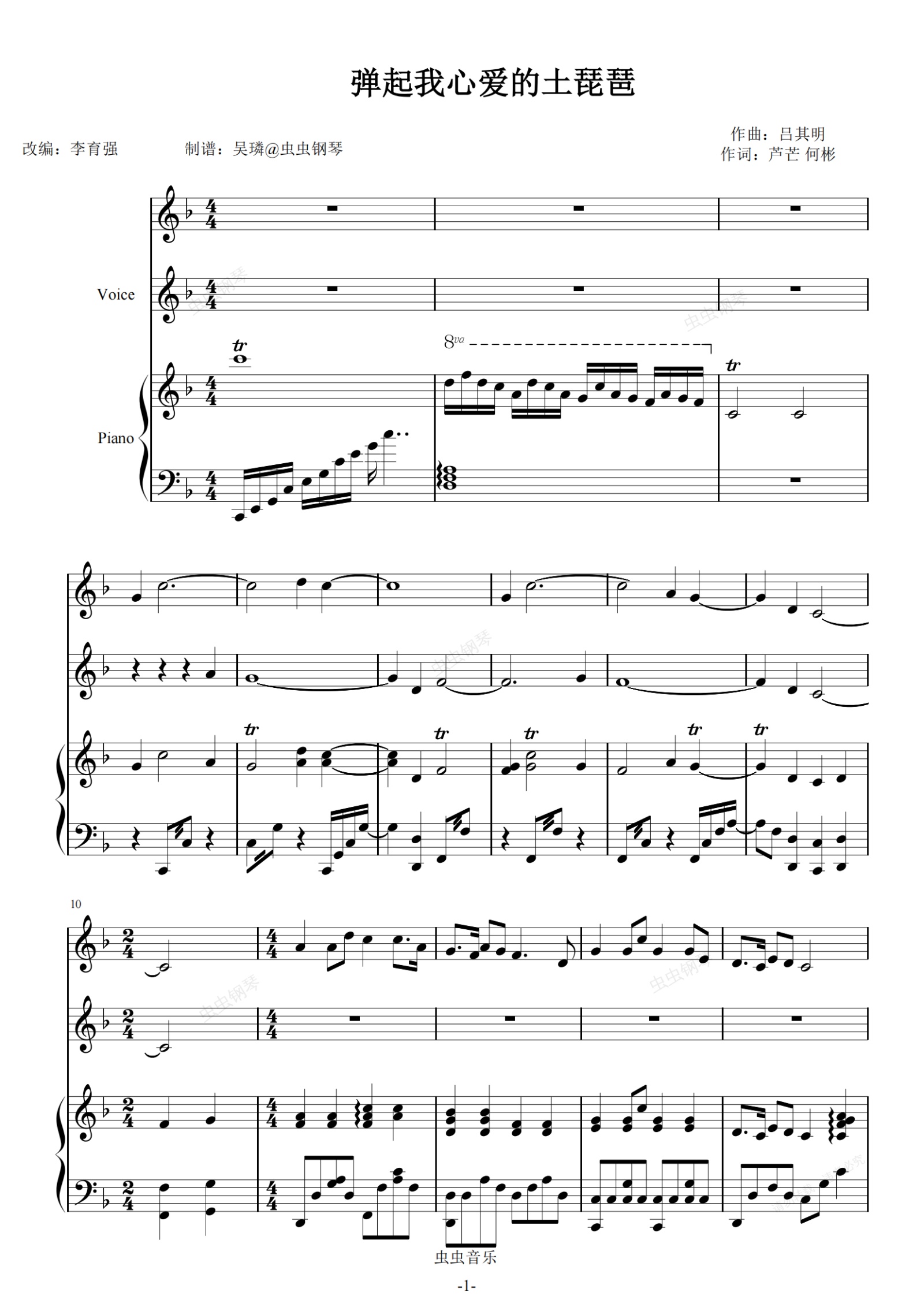 钢琴谱:《弹起我心爱的土琵琶》(F转G)