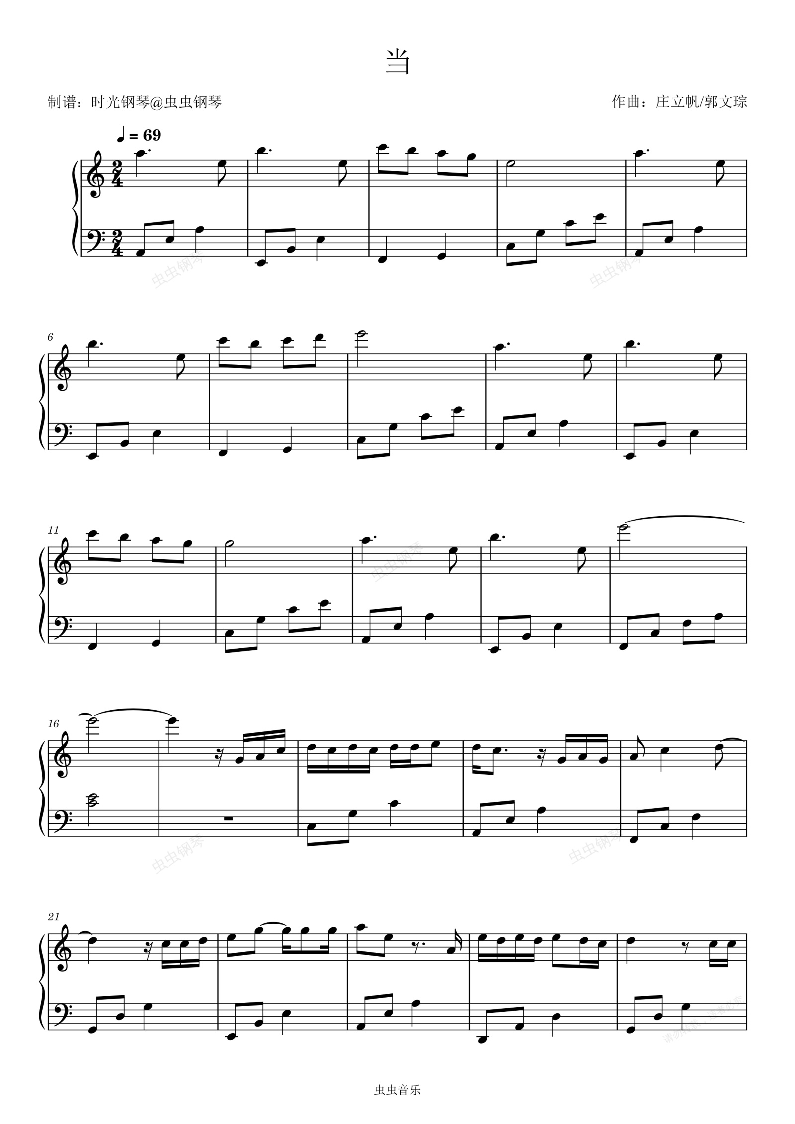 钢琴谱:当 还珠格格 QTLE 简单好听
