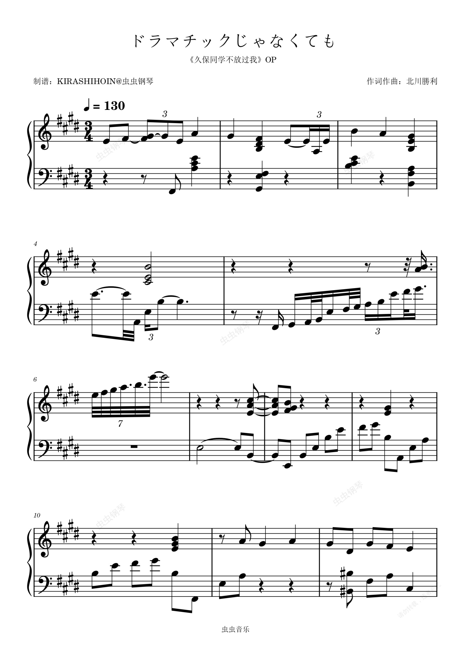 钢琴谱:ドラマチックじゃなくても(《久保同学不放过我》OP/片头曲)- 花泽香菜