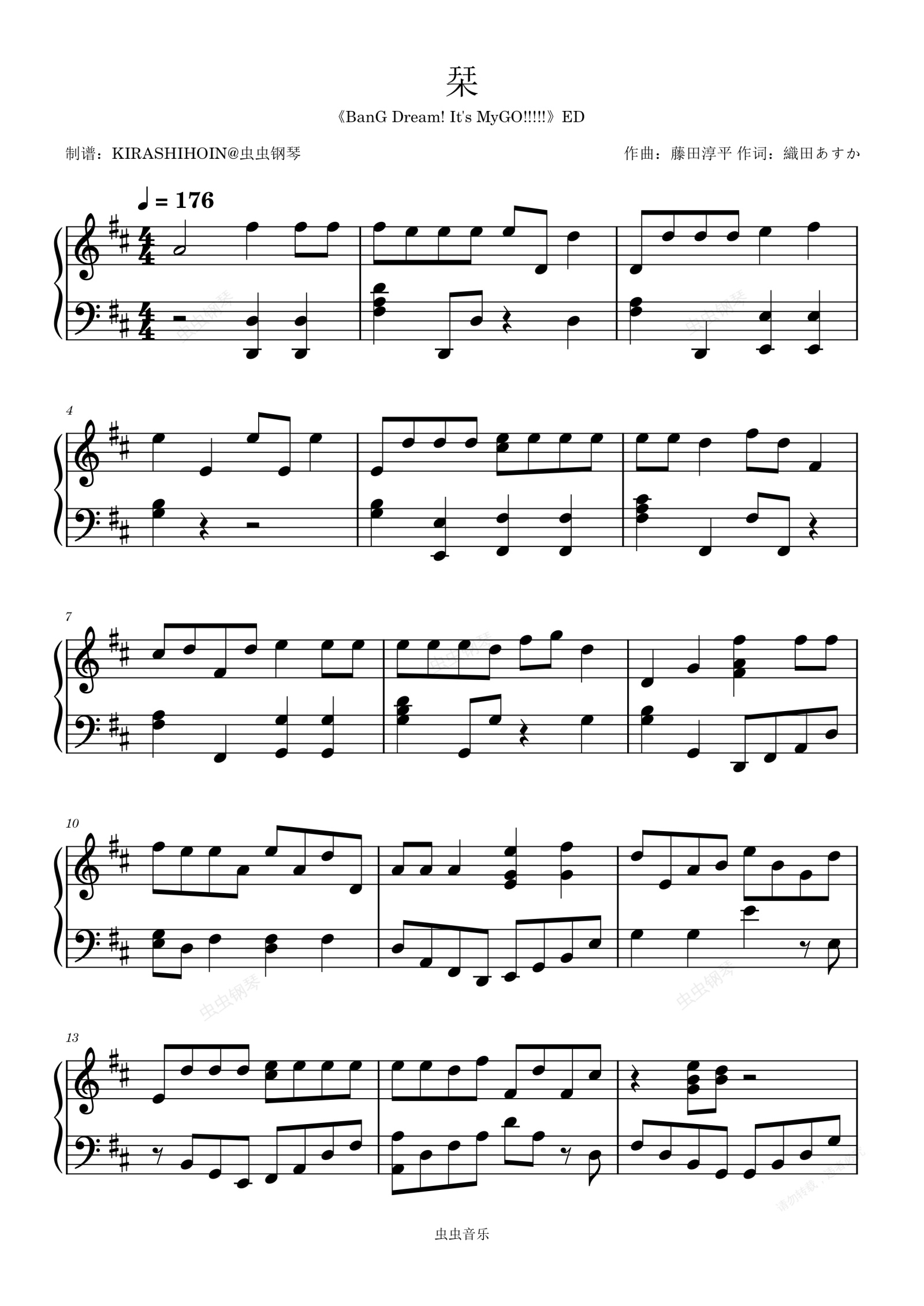 钢琴谱:栞(《BanG Dream! It's MyGO!!!!!》ED/片尾曲)- MyGO!!!!!