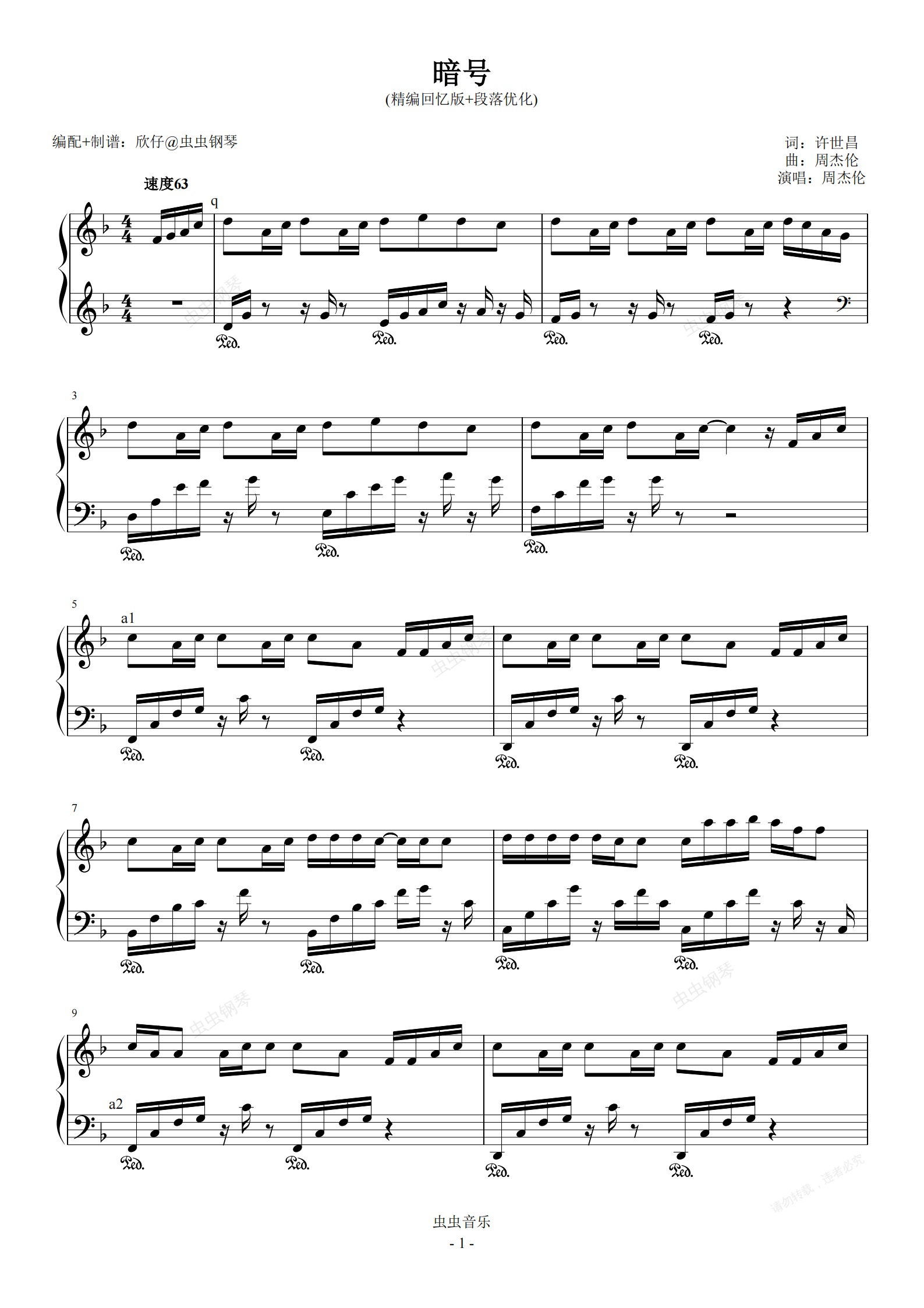 钢琴谱:周杰伦-F《暗号》(精编回忆版+段落优化)
