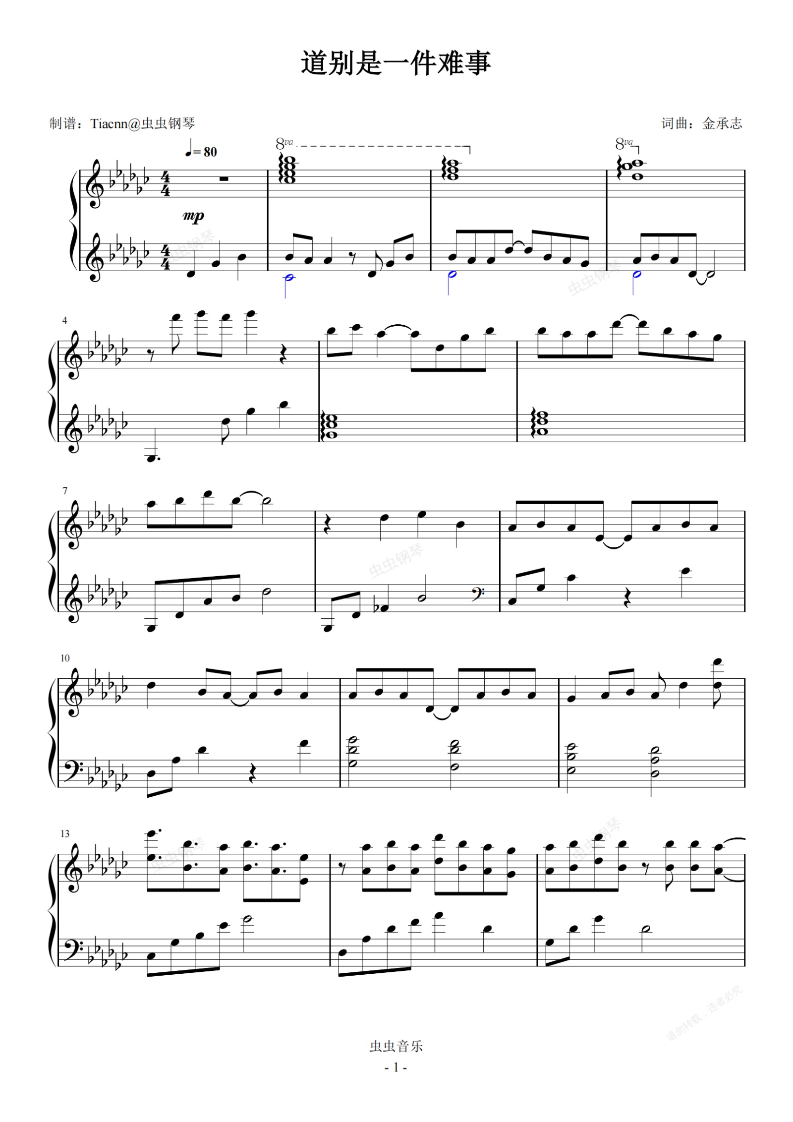 钢琴谱:《道别是一件难事》合唱改编,温柔深情