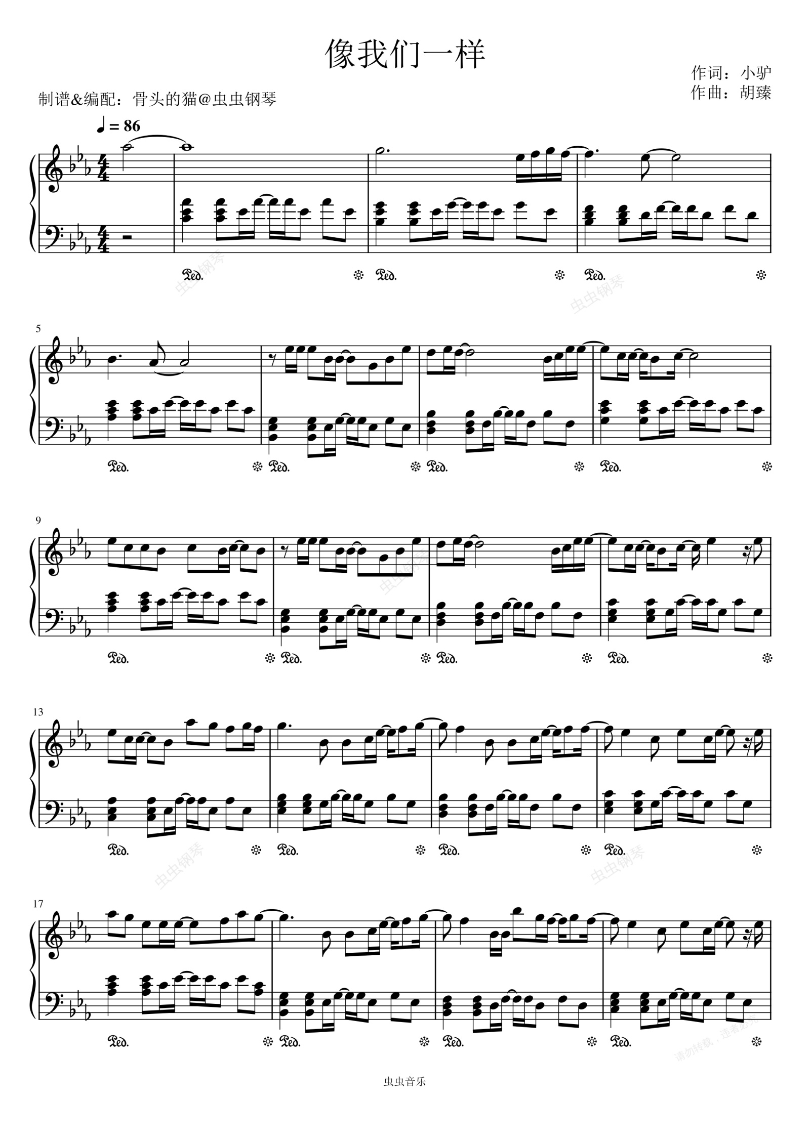 钢琴谱:像我们从前-王心凌-电影《茶啊二中》主题曲