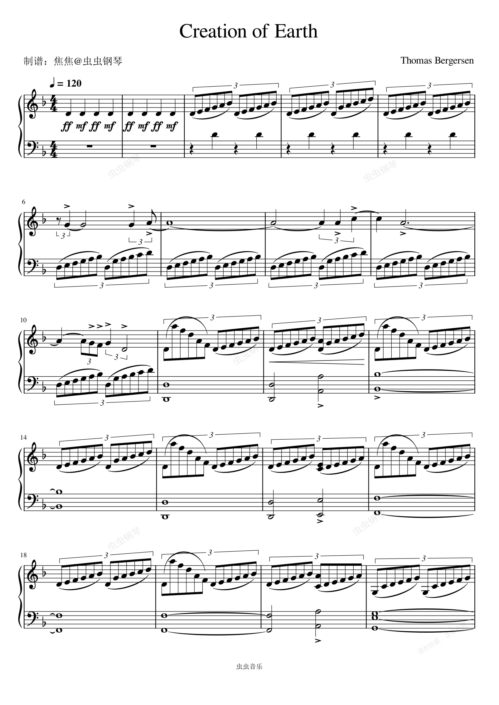 钢琴谱:Creation of Earth - Thomas Bergersen