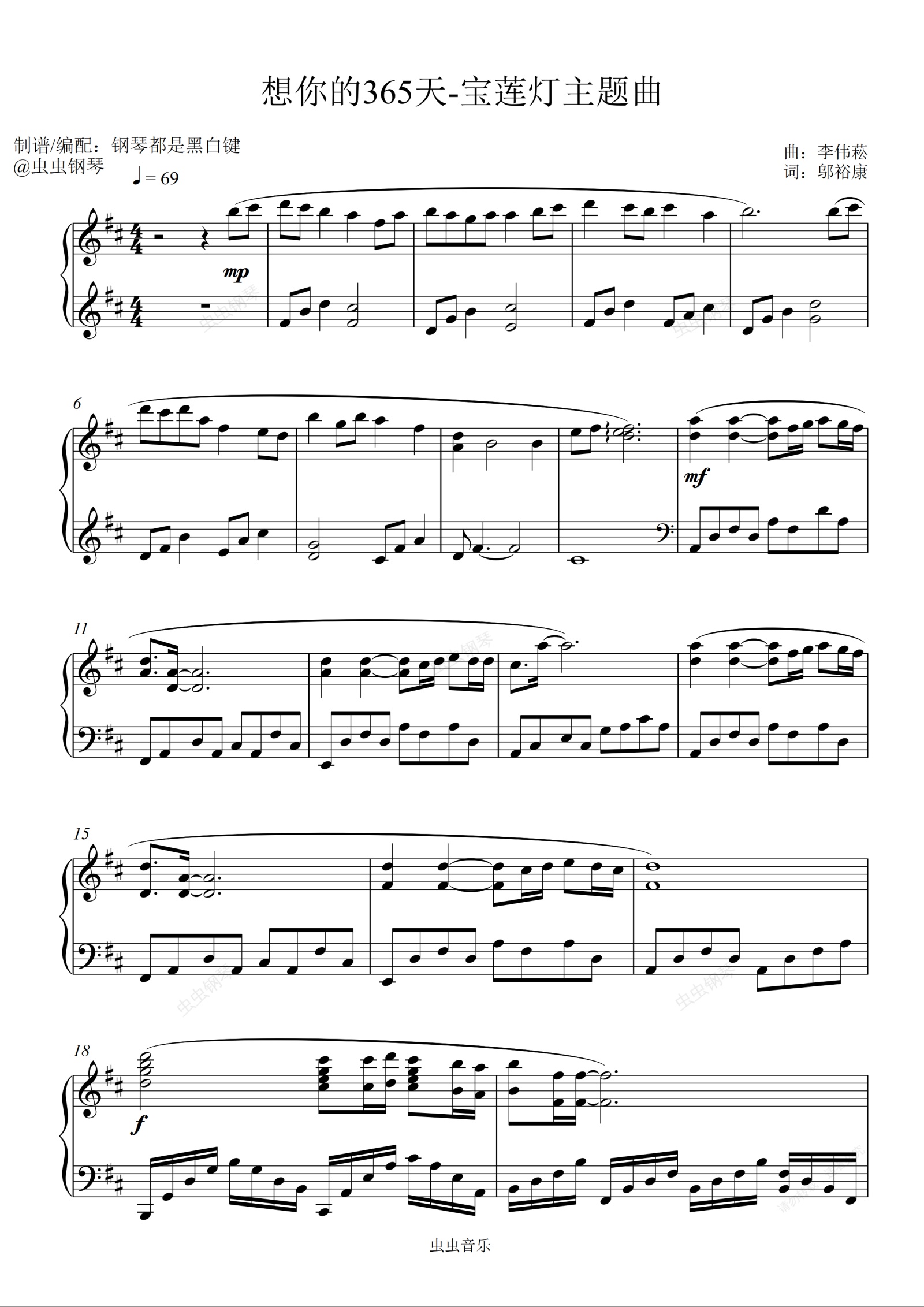 钢琴谱:想你的365天- CoCo李玟 [宝莲灯主题曲]