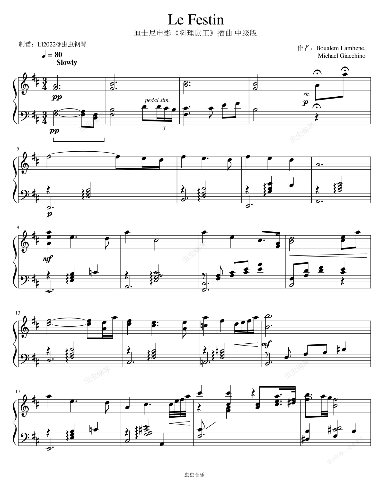 钢琴谱:Le Festin - 中级独奏版 - 迪士尼电影《料理鼠王》插曲 - Disney's Ratatouille OST