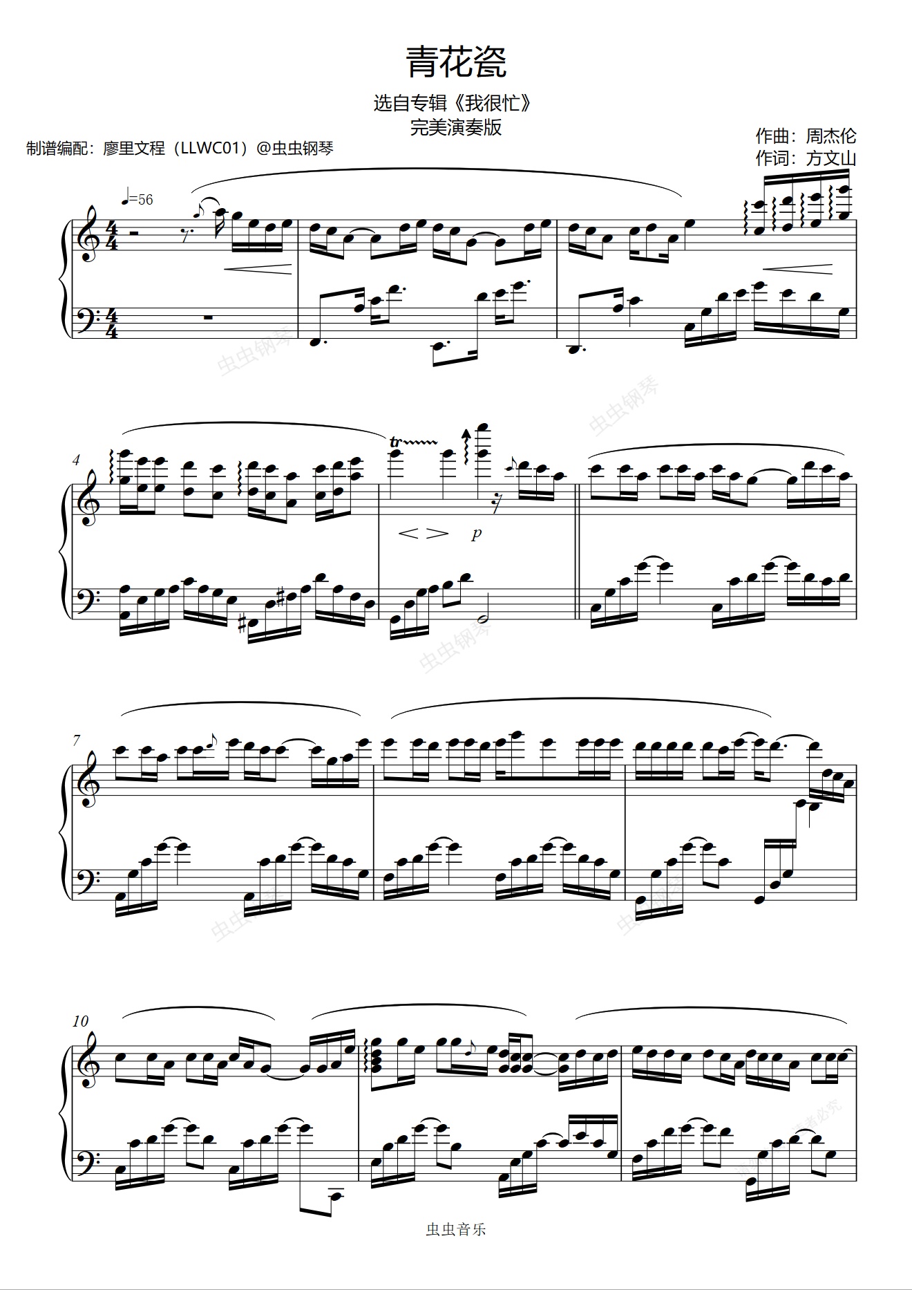 钢琴谱:《青花瓷》C调原版完美演奏100%复刻