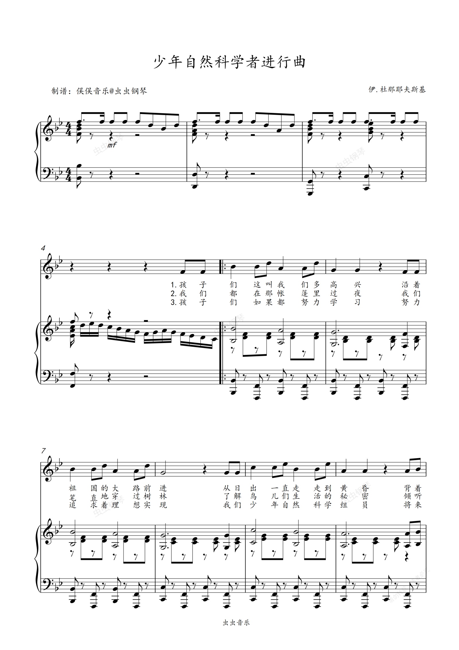钢琴谱:少年自然科学者进行曲(合唱伴奏谱)