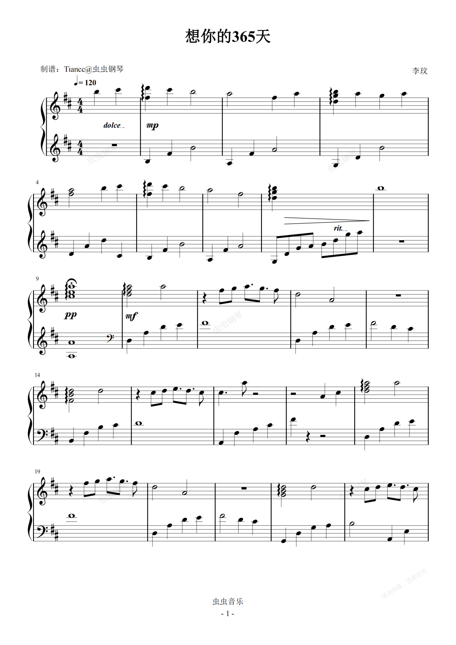 钢琴谱:《想你的365天》啊!李玟姐姐,我的女神啊
