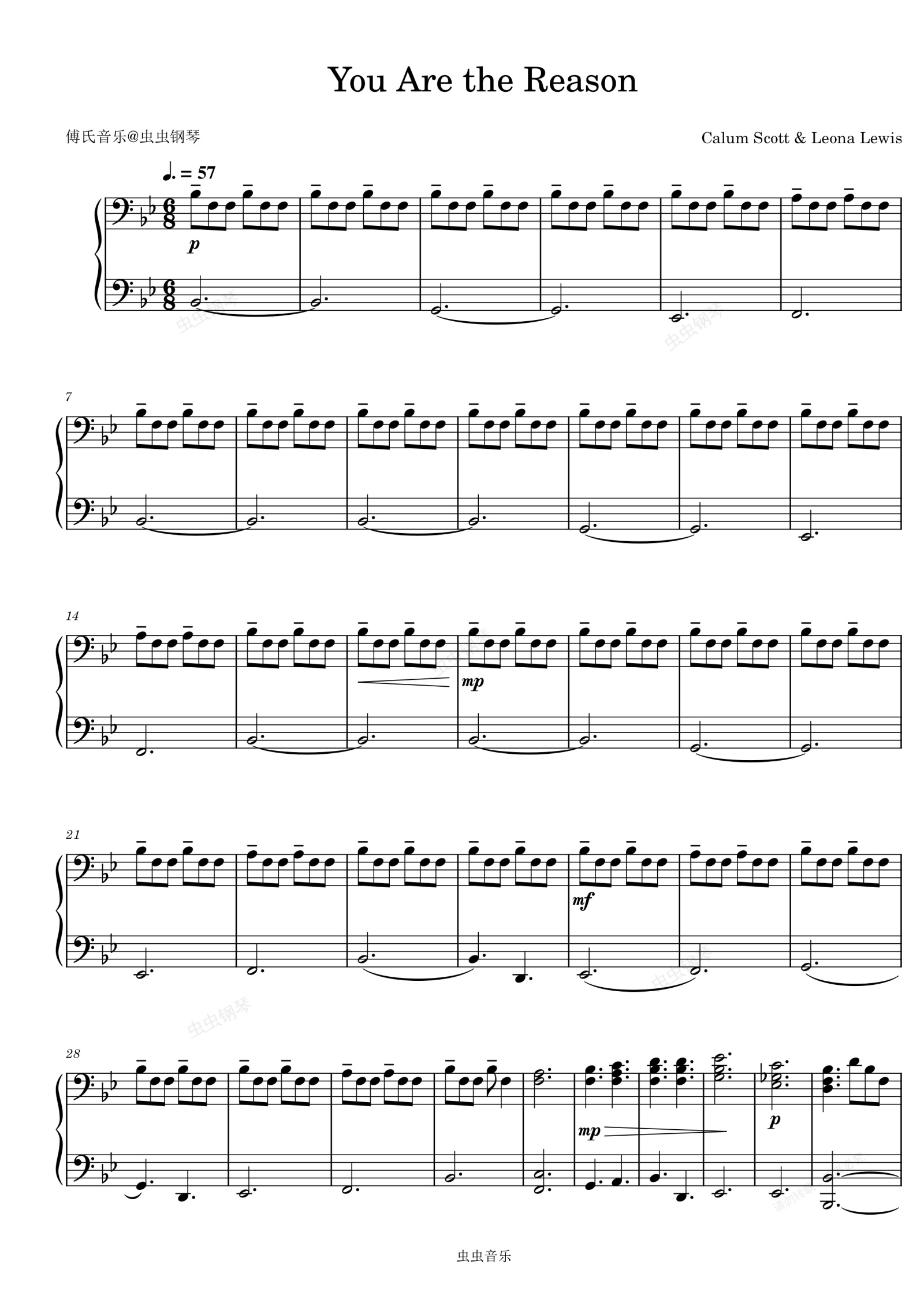 钢琴谱:You Are The Reason (你是我的一切) (Duet Version) - Calum Scott (卡鲁姆·斯科特)/Leona Lewis (丽安娜·刘易斯)
