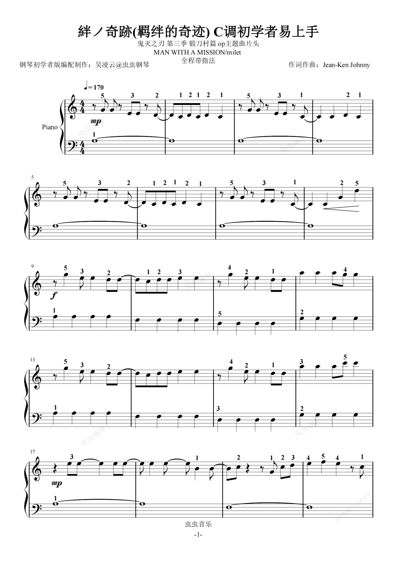 絆ノ奇跡(羁绊的奇迹) C调初学者易上手 鬼灭之刃 第三季 锻刀村篇 op主题曲片头 MAN WITH A/milet 全程带指法 钢琴初学者版编配制作:吴凌云@虫虫钢琴 作词作曲 #鬼灭之刃 #鬼灭之刃第三季 #锻刀村篇 #鬼灭之刃锻刀村篇 #絆ノ奇跡 #羁绊的奇迹 #MAN WITH A #milet #ミレイ #米蕾 #鬼滅の刃