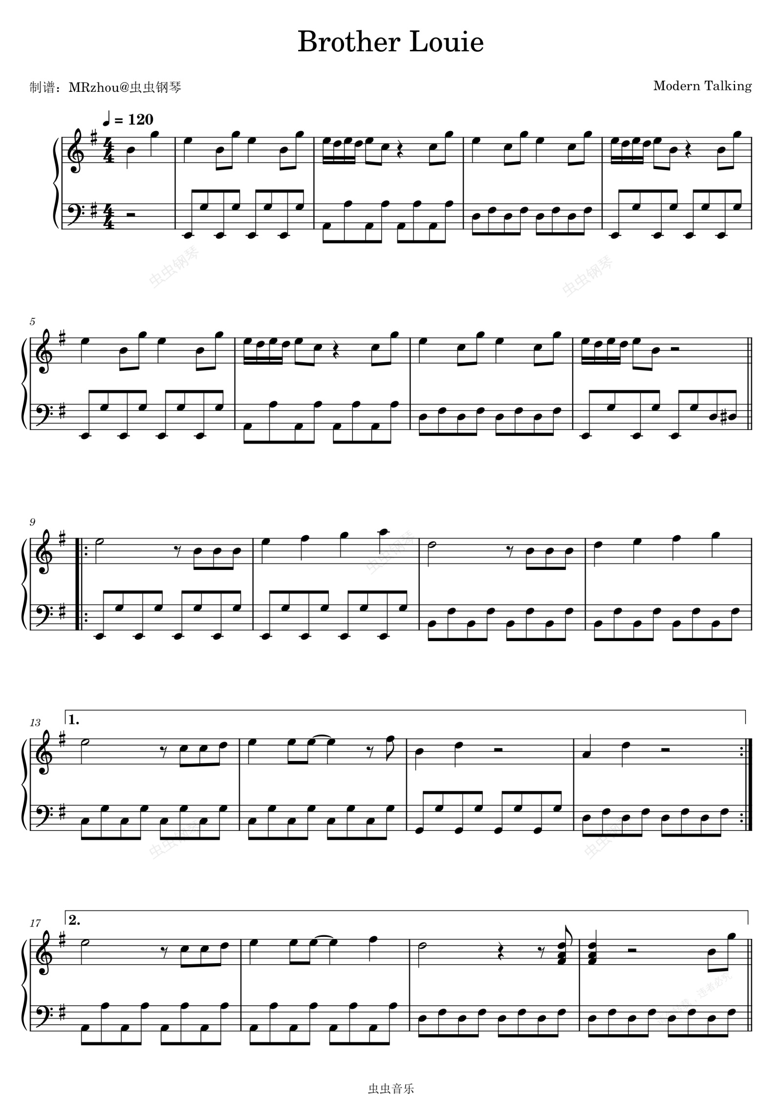 钢琴谱:Brother Louie - Modern Talking